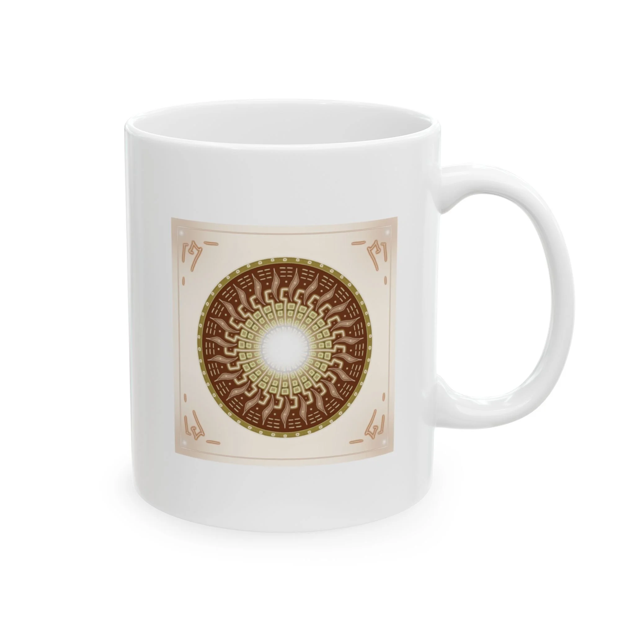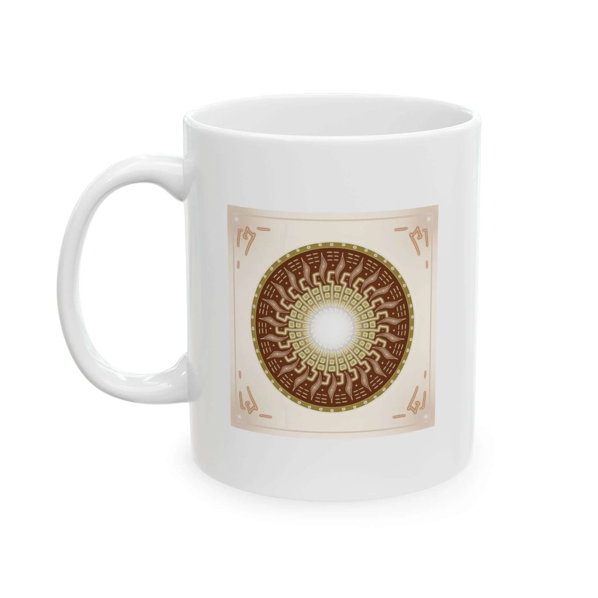 Warm morning light spills across a kitchen table. The white ceramic mug holds a rich, earthy design—soft sepia tones and hand-drawn details that feel like a page torn from a travel journal. It’s the kind of mug you reach for when you want a small, steady ritual: pour coffee, breathe in the steam, and let a familiar image anchor the day. The glossy finish makes the artwork sing while the comfortable C-handle fits the hand naturally. Available in two sizes to suit a quick espresso-style pour or a long, slow refill, this mug is built for everyday use and crafted to keep prints crisp and vibrant through regular wear.