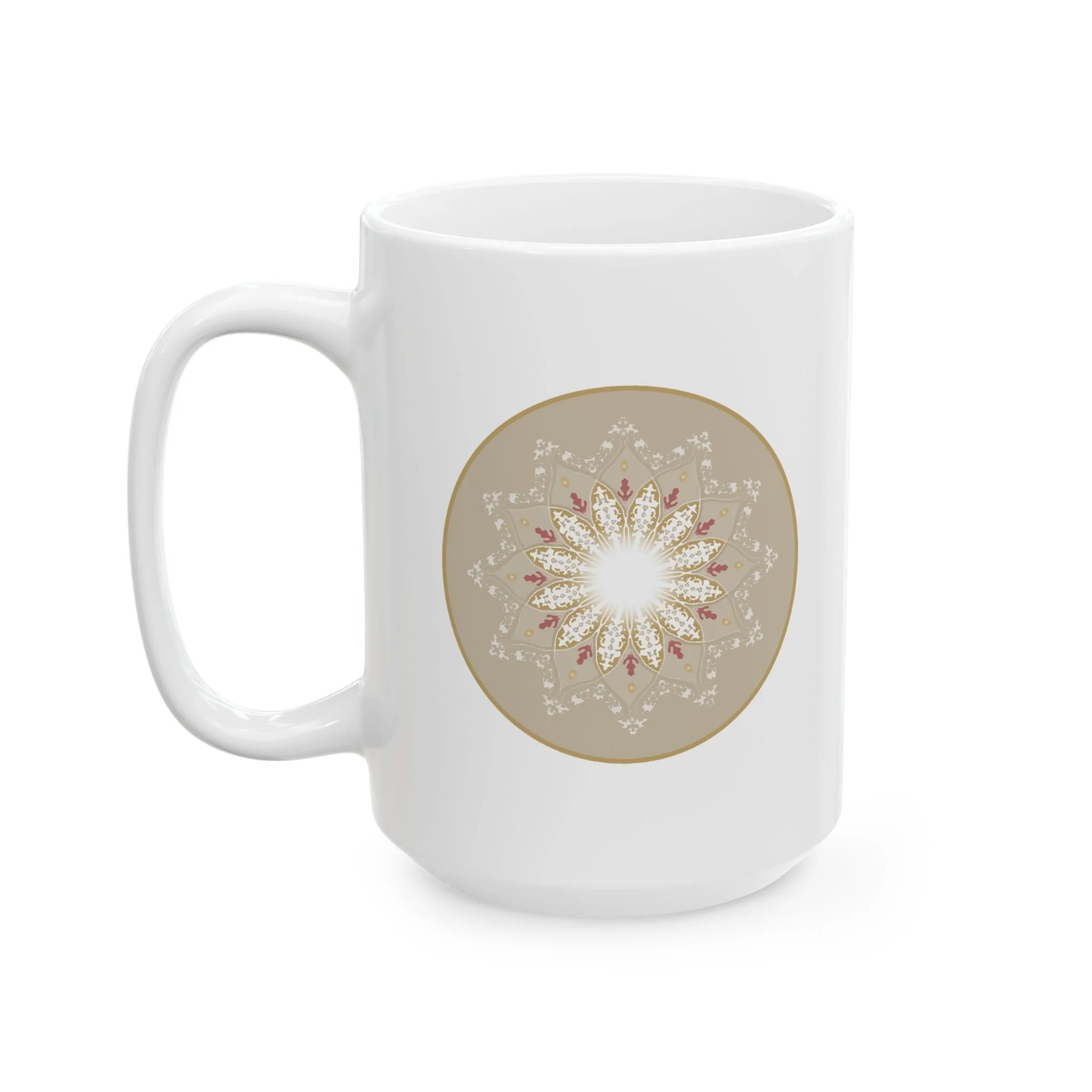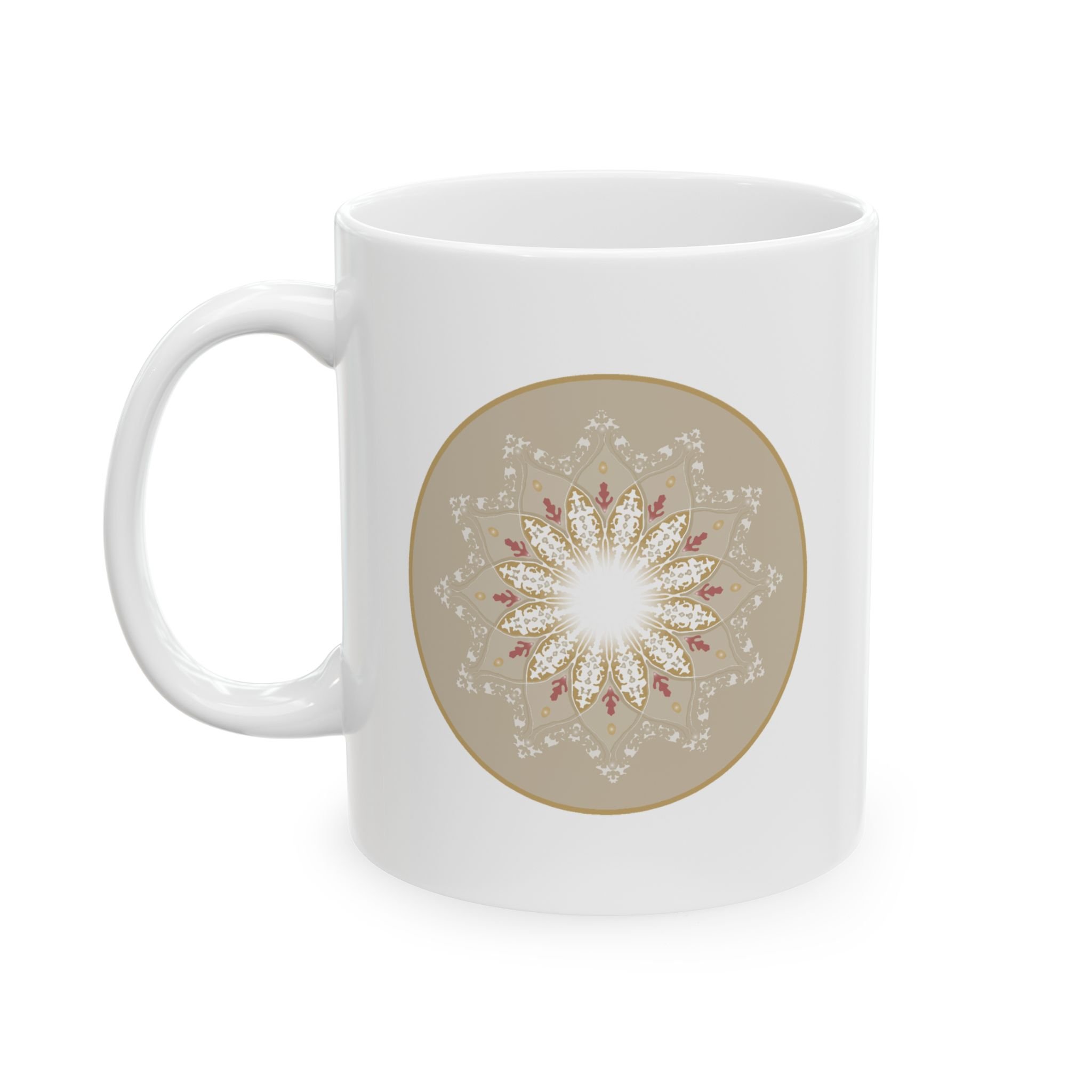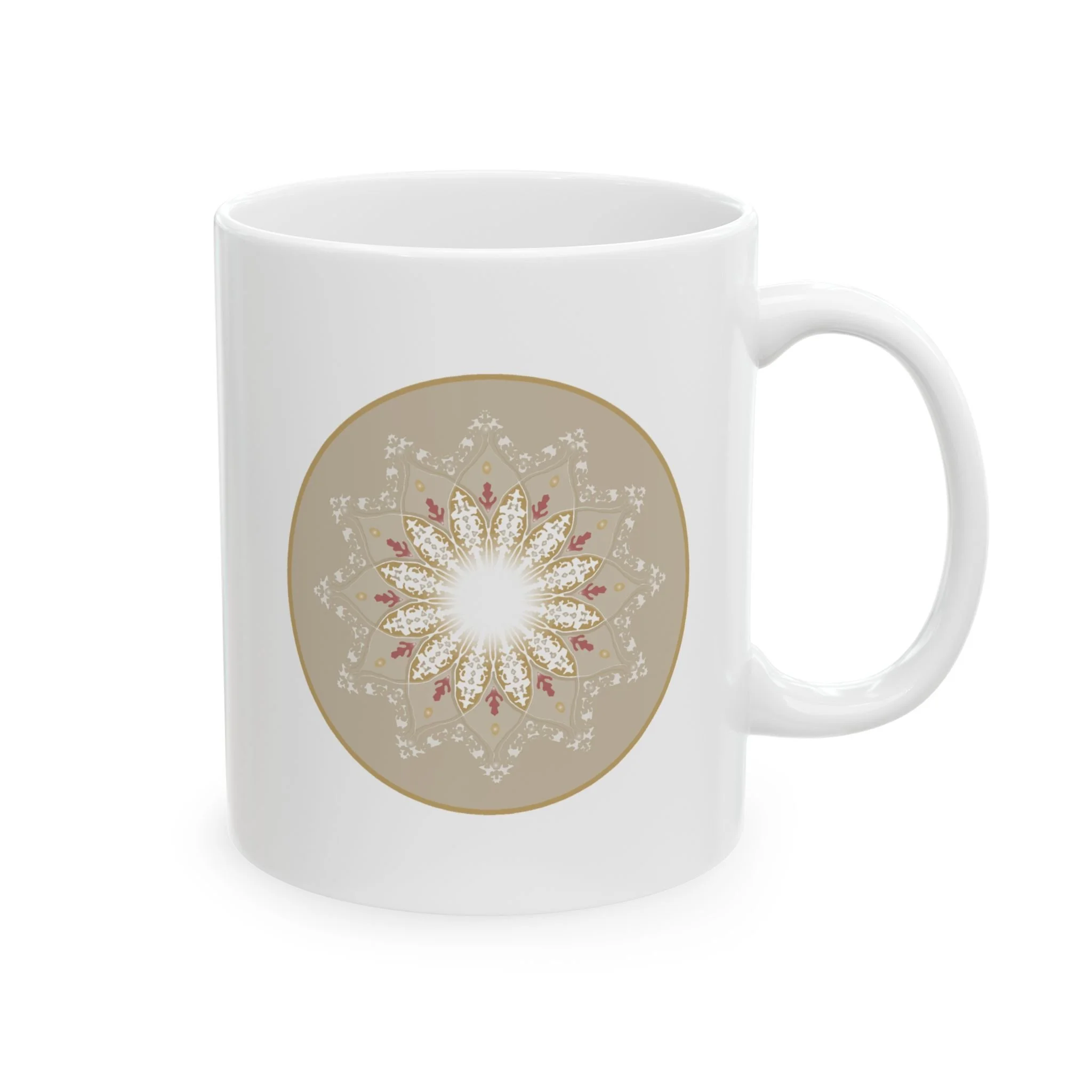 This glossy ceramic mug brings a little calm to everyday rituals. Soft, earthy artwork wraps around the white surface, turning a simple coffee break into a quiet moment. The comfortable C-handle and gleaming finish make it easy to hold and pleasant to look at while the durable white ceramic lets the muted tones of the design stay true wash after wash. Choose 11oz for concise morning sips or 15oz when you want a longer slow-pour companion. Lead- and BPA-free, microwave- and dishwasher-safe — this mug is built for daily use and for those who appreciate gentle, homey details.