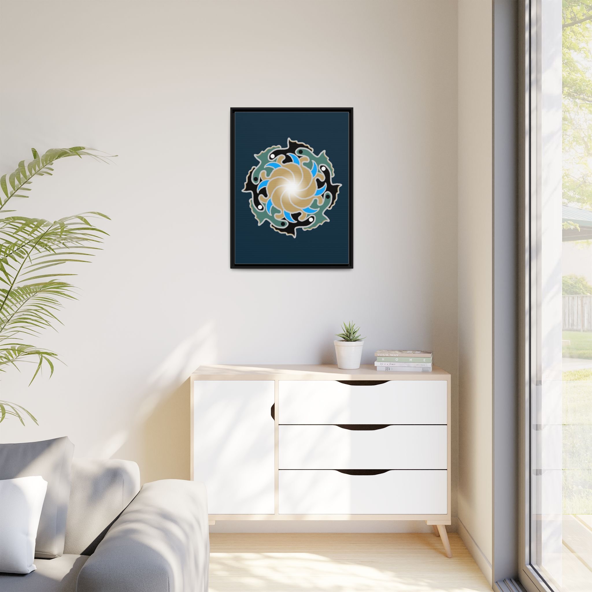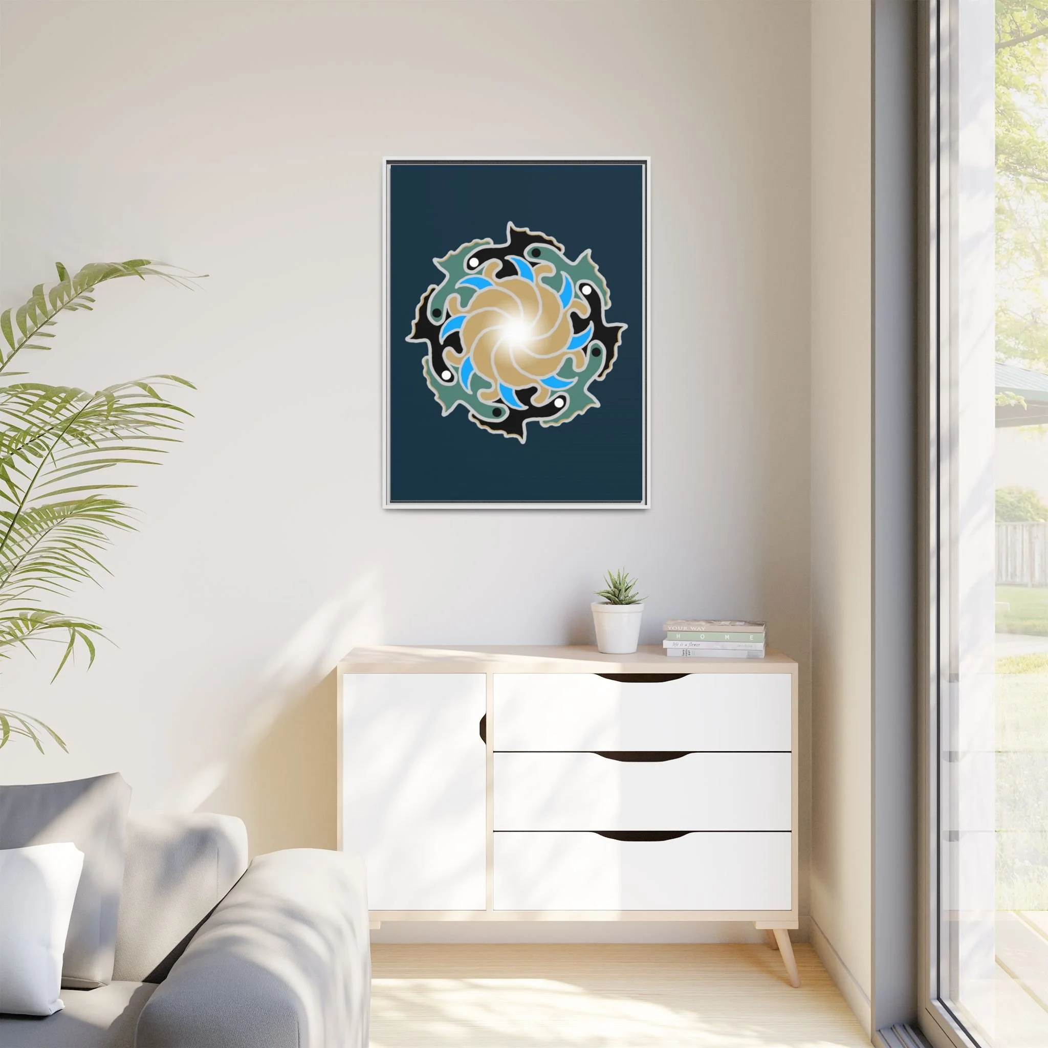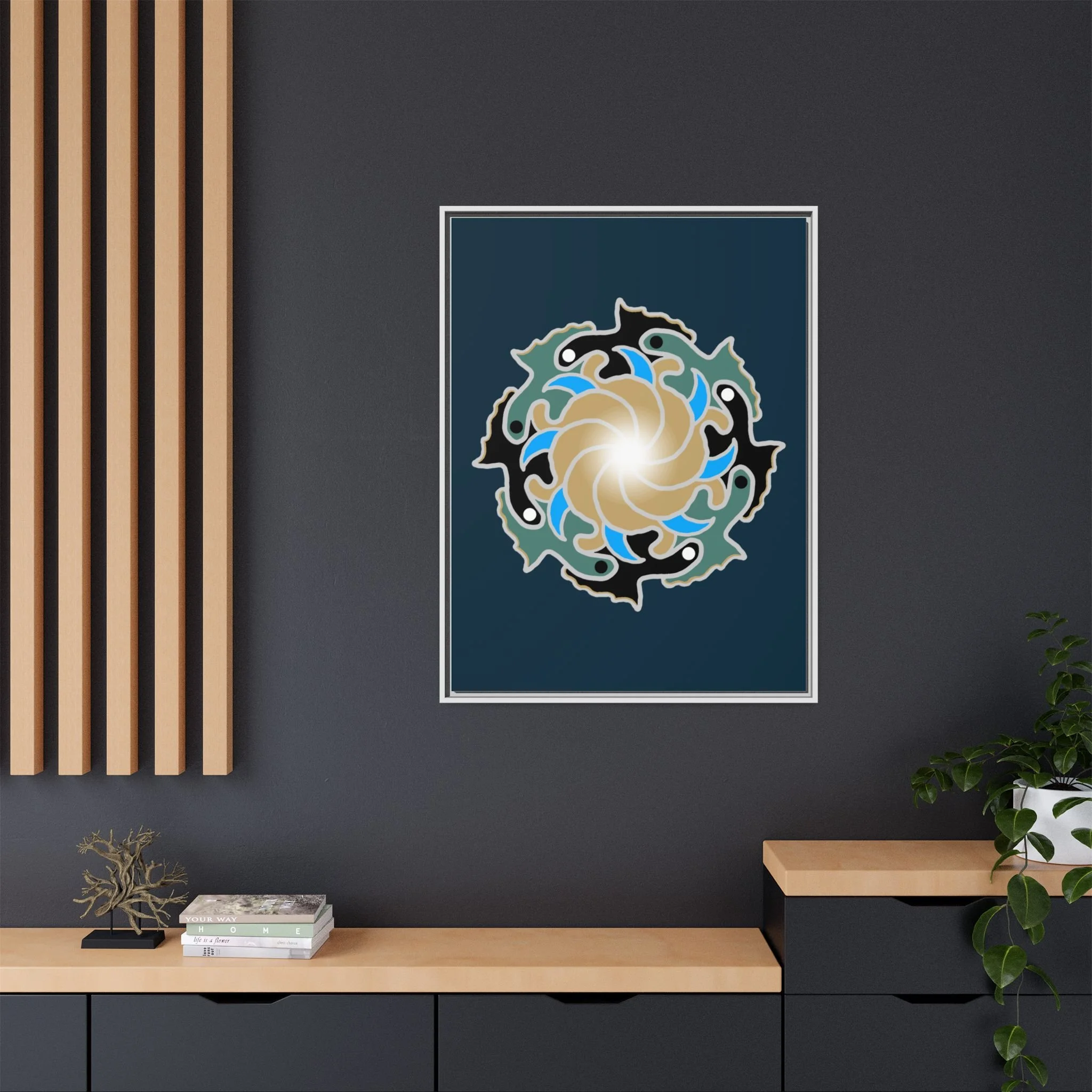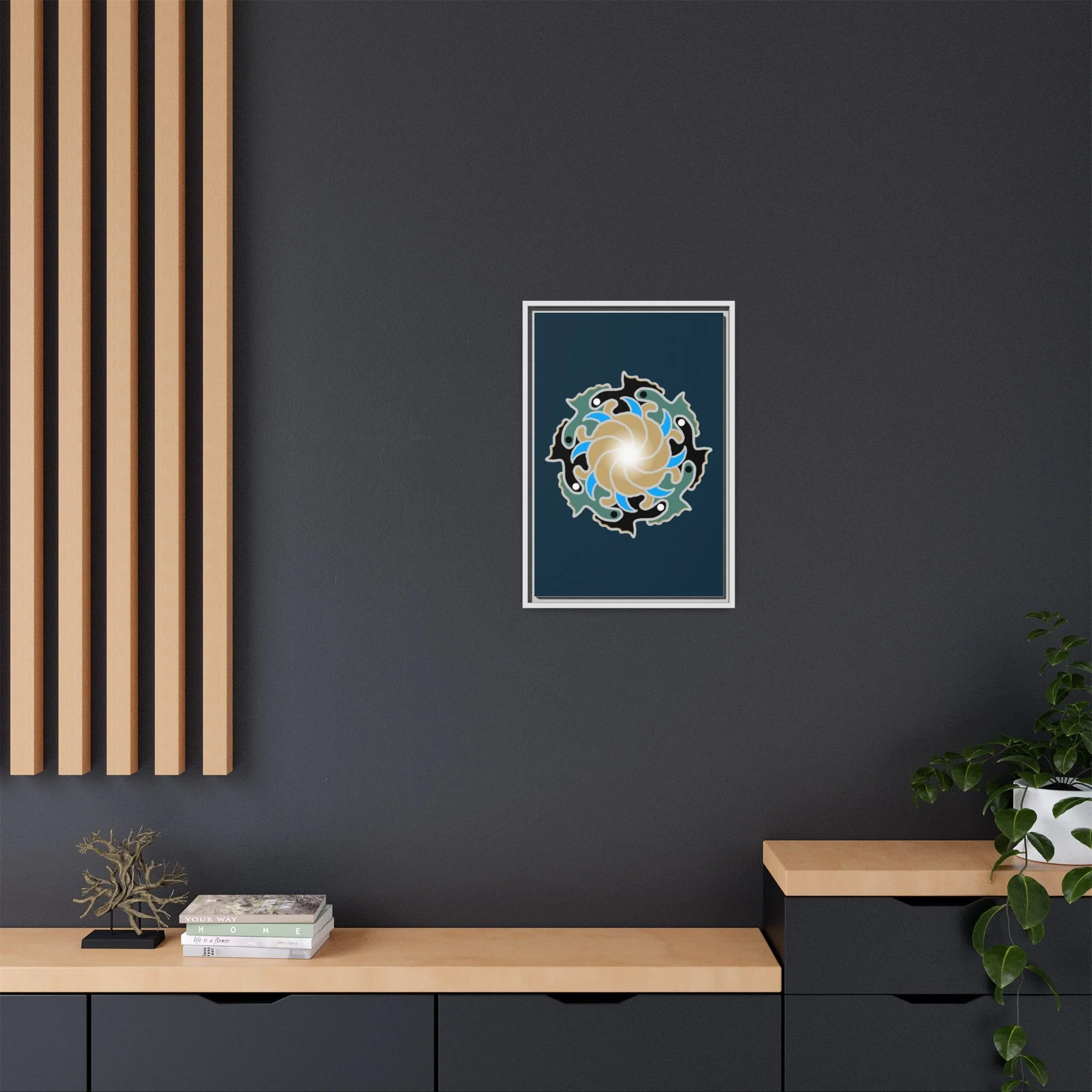 This framed canvas suits anyone who curates calm: people building a tranquil home, studio owners aiming for a soothing backdrop, or friends who value mindful, handmade decor. It complements moments like relaxed weekend mornings, intimate gatherings, or a quiet evening of journaling and tea.