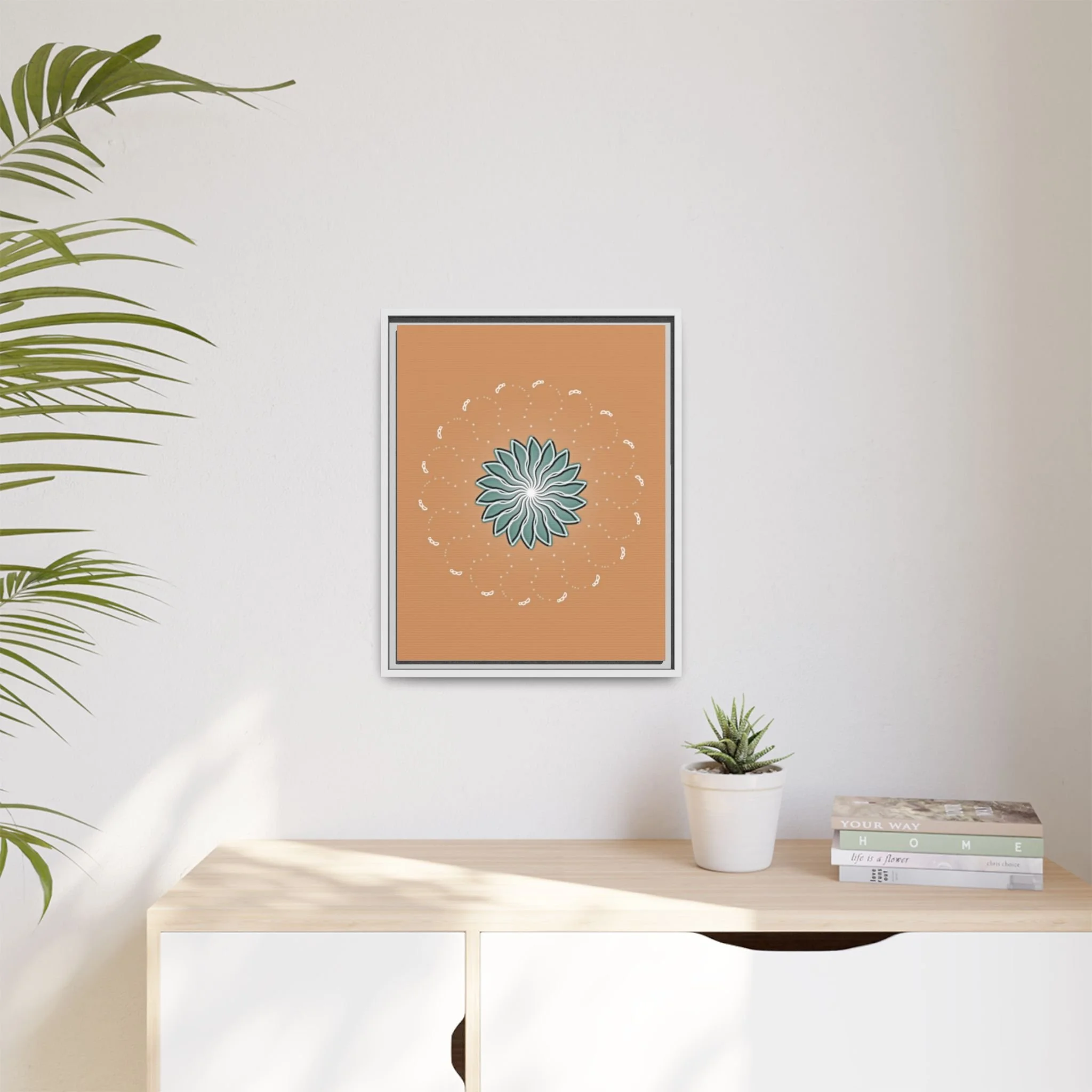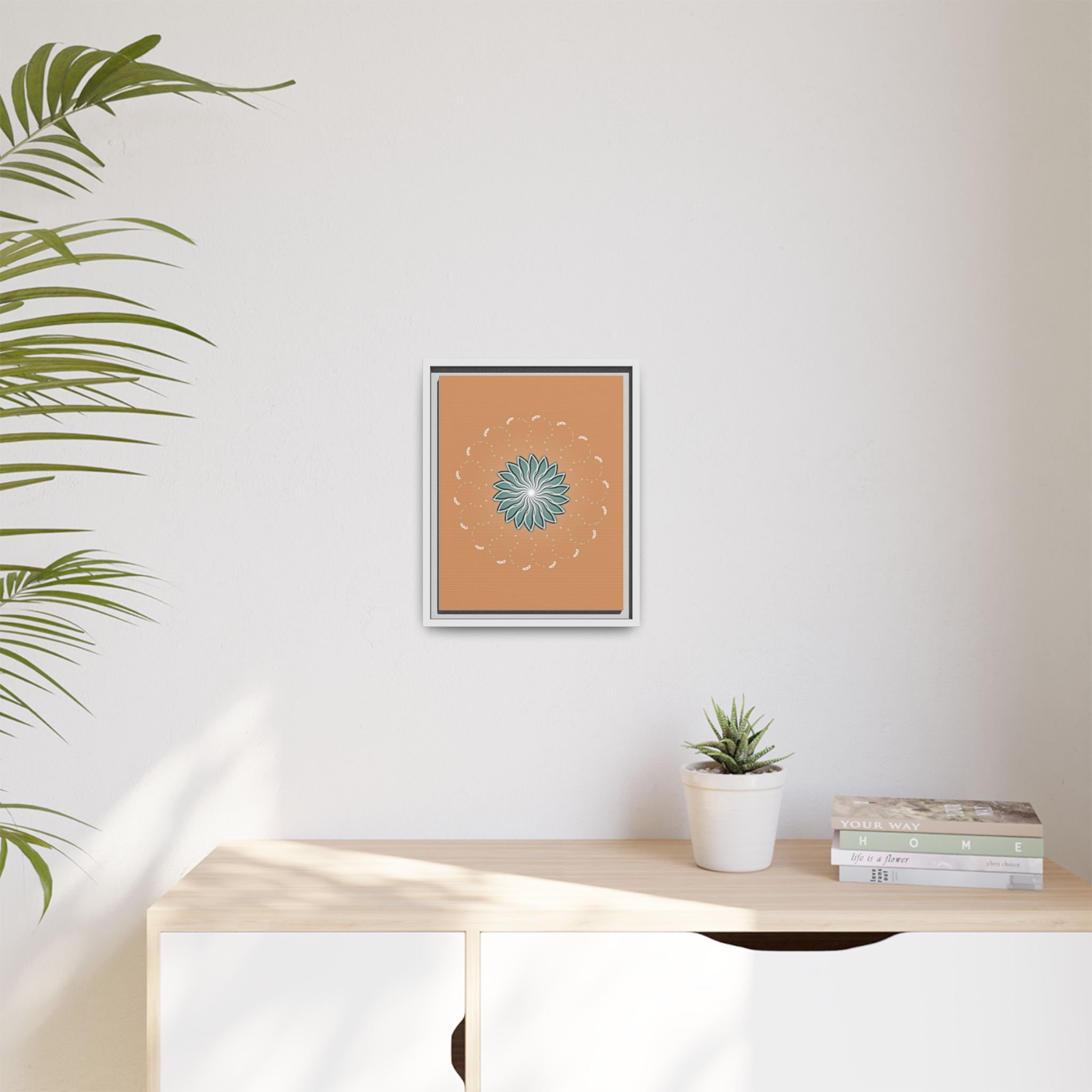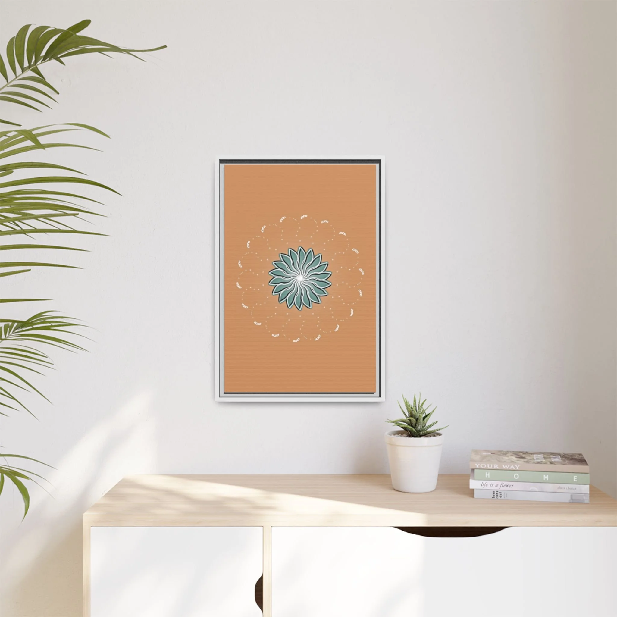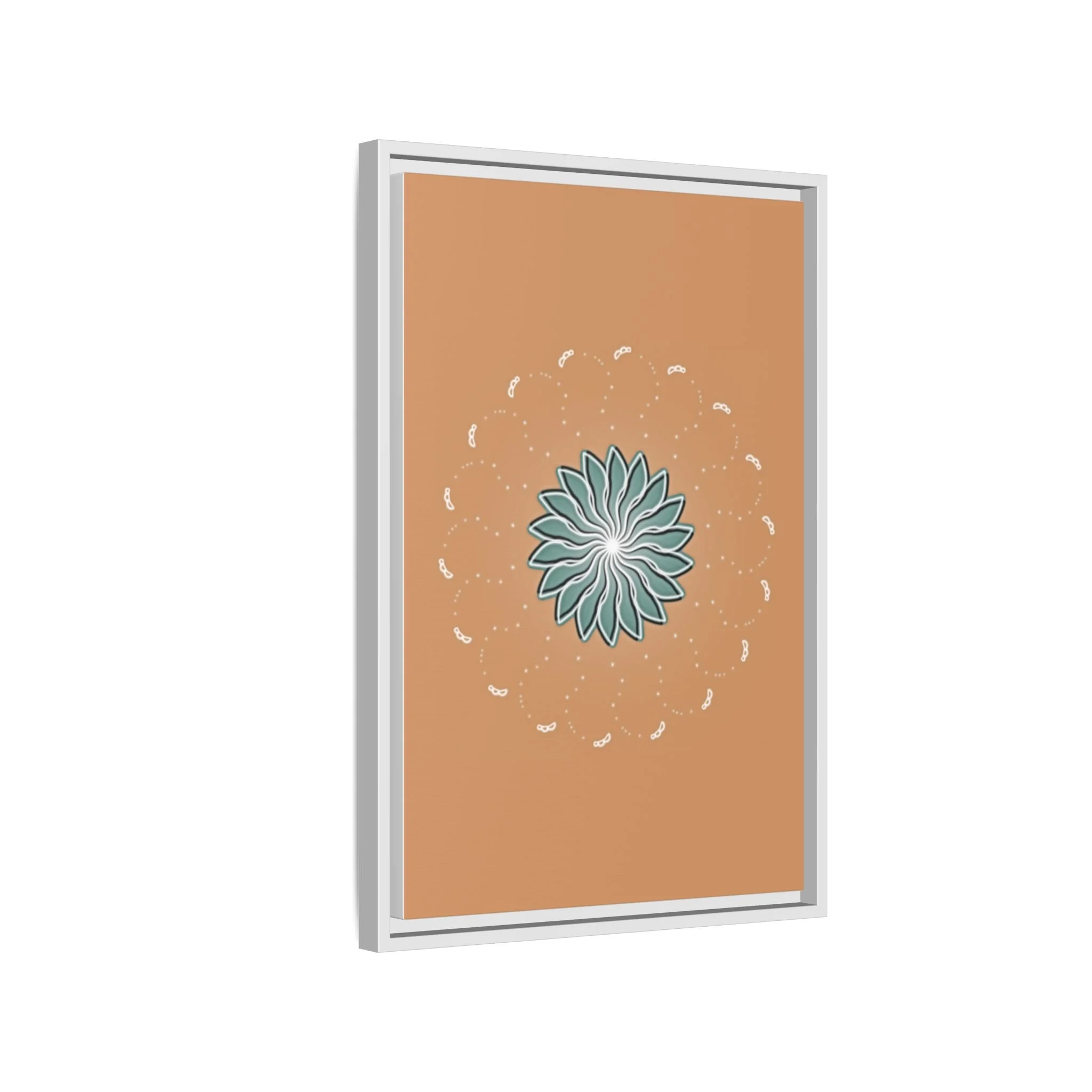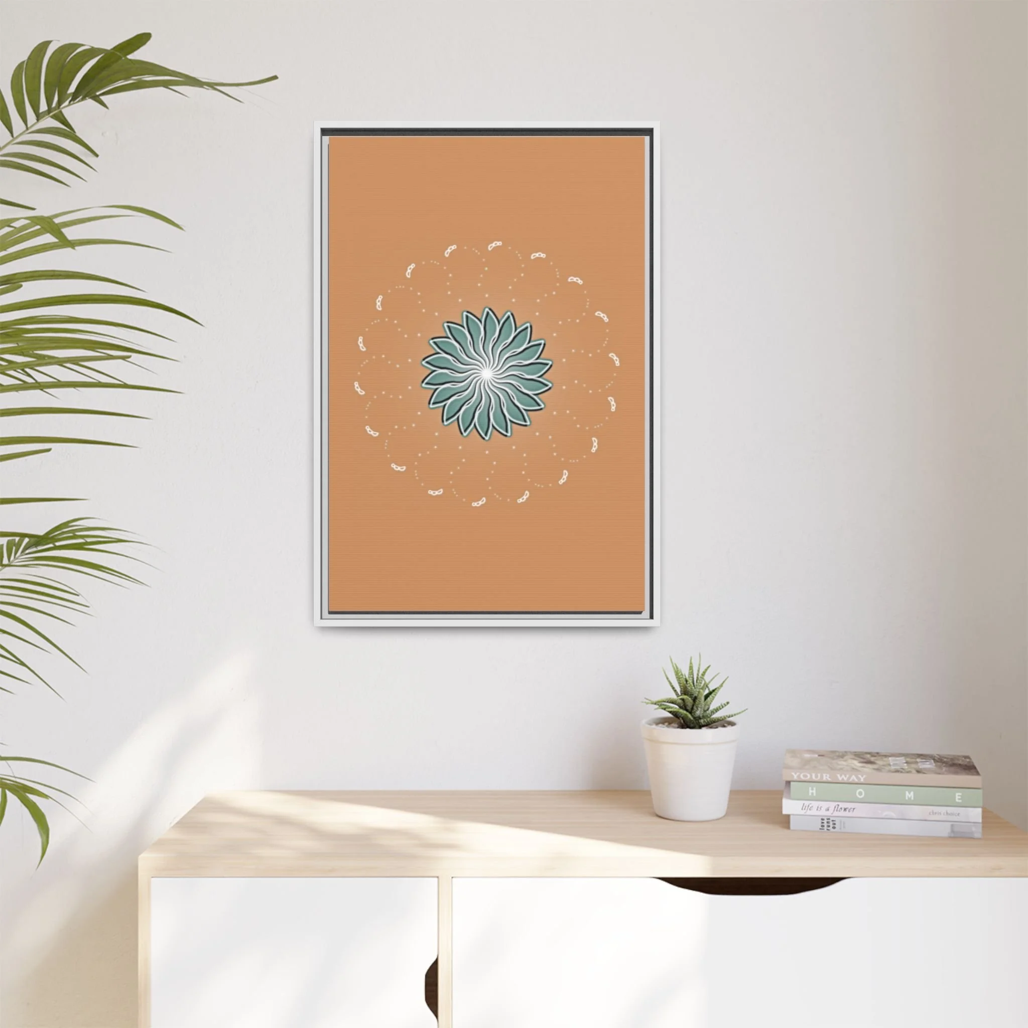 Framed Mandala Canvas Wall Art — Terracotta Teal Blossom Print