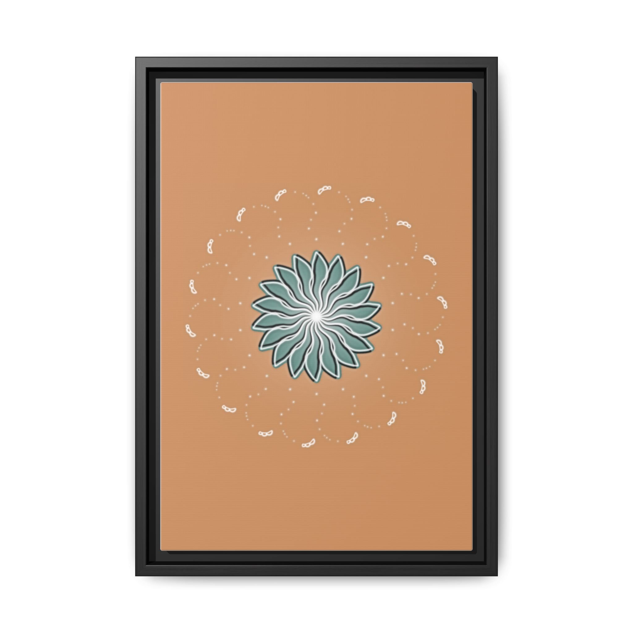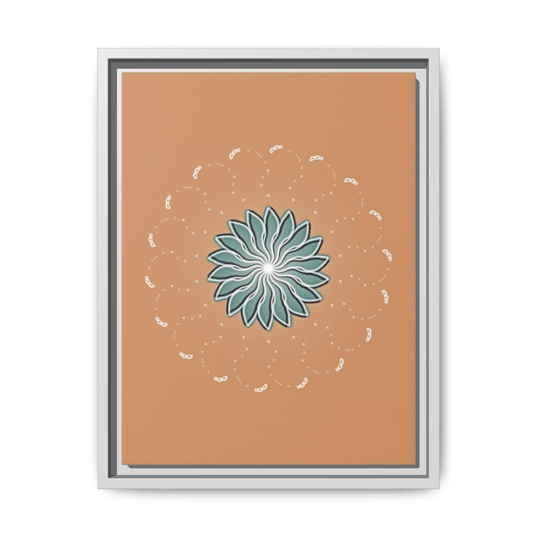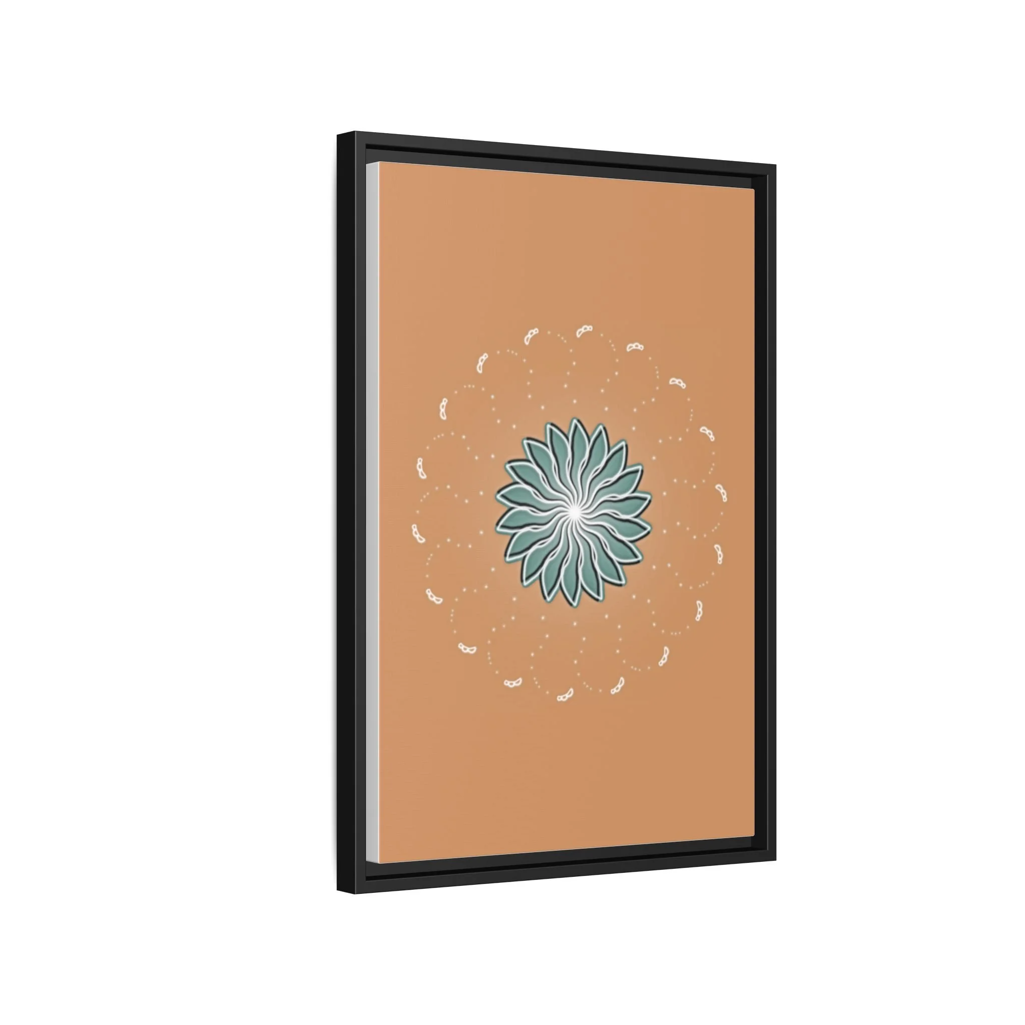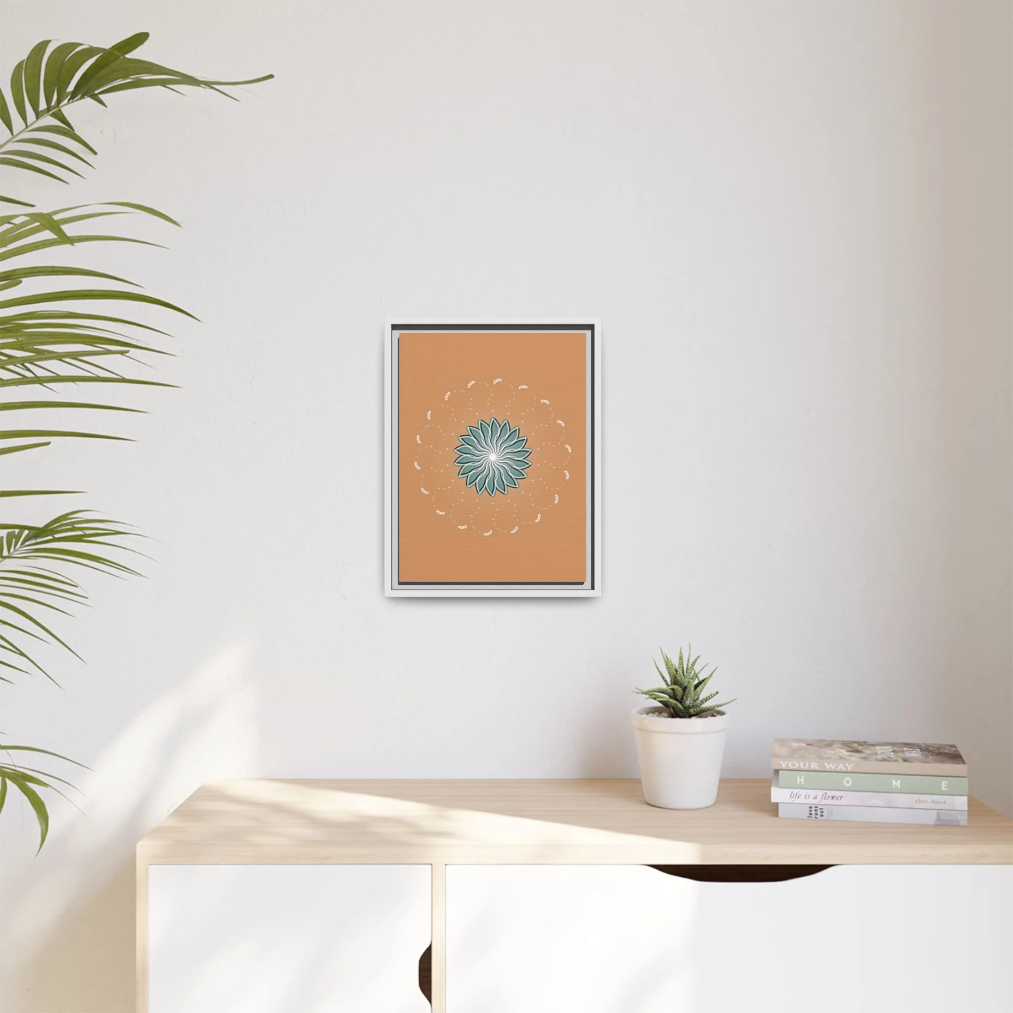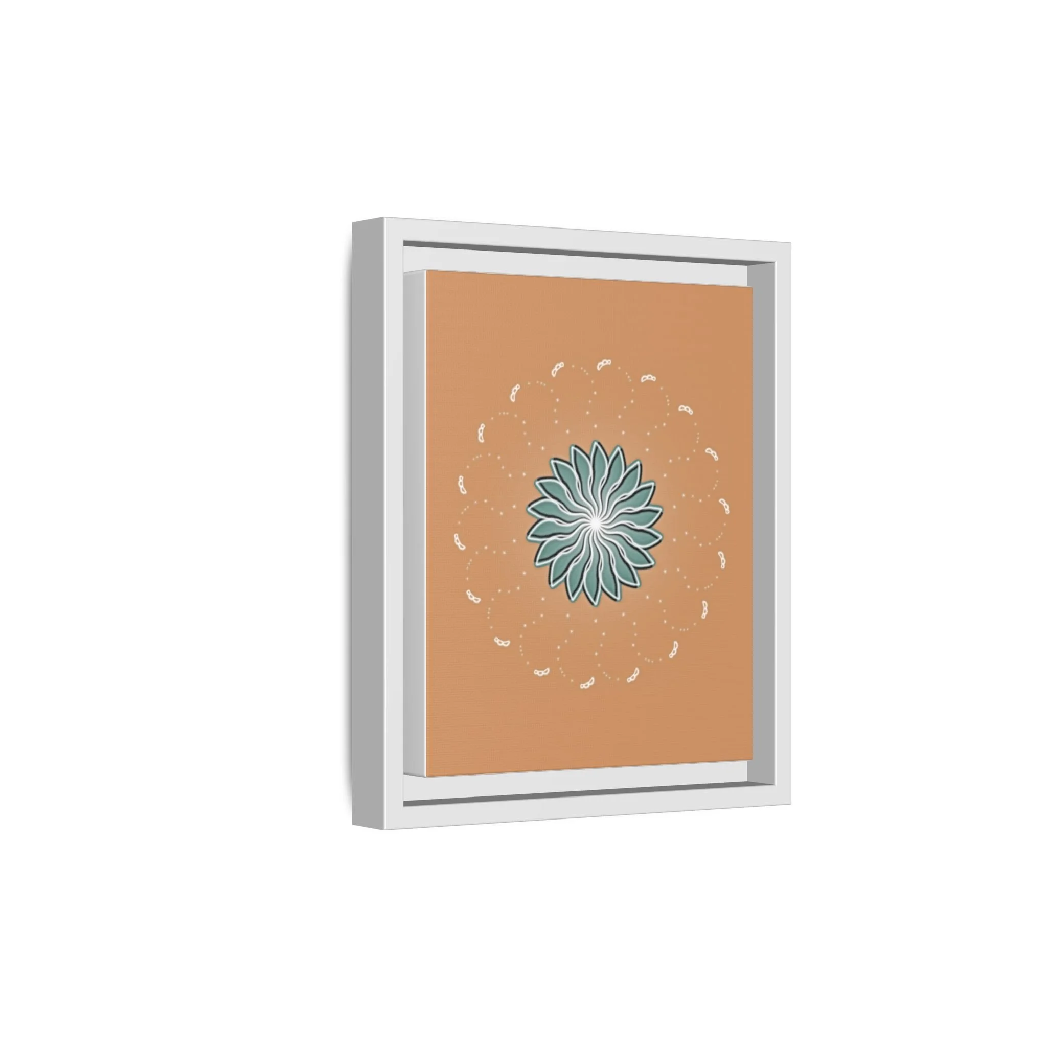 Framed Mandala Canvas Wall Art — Terracotta Teal Blossom Print