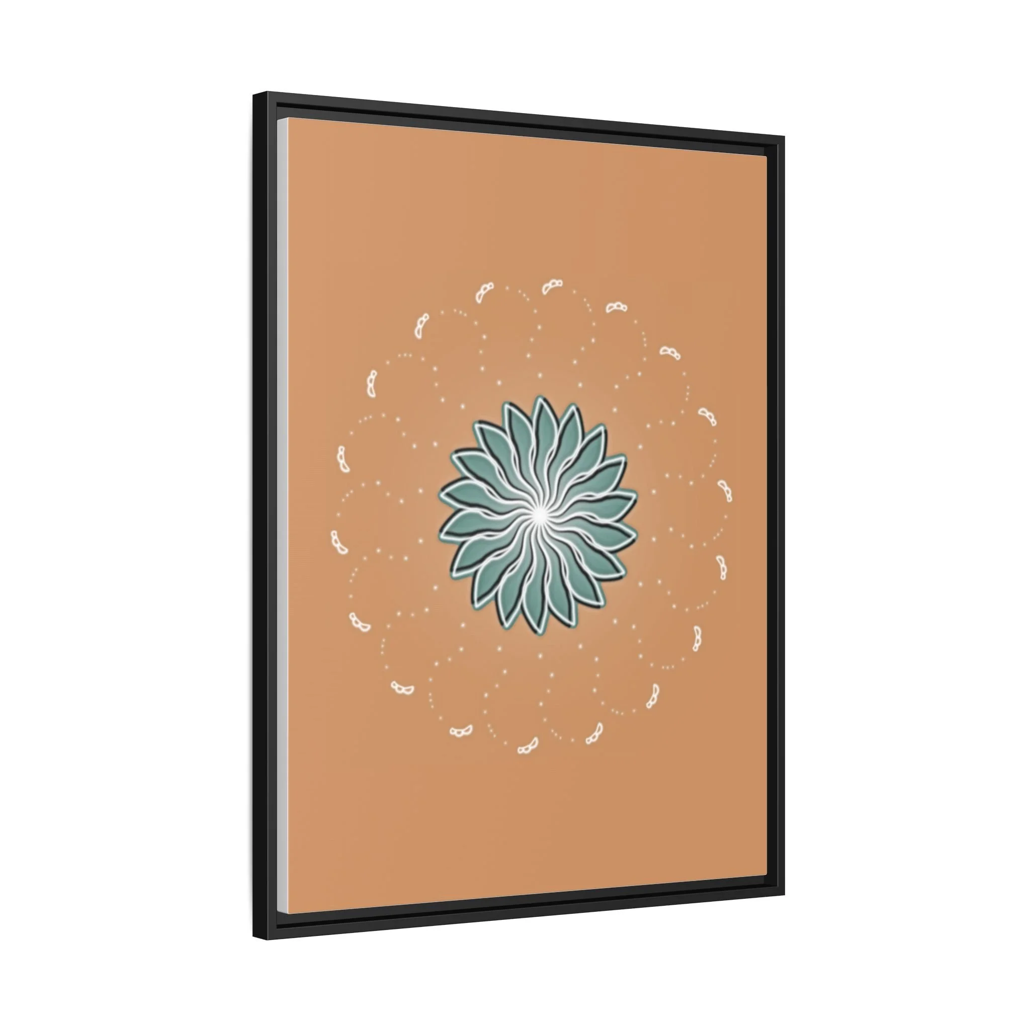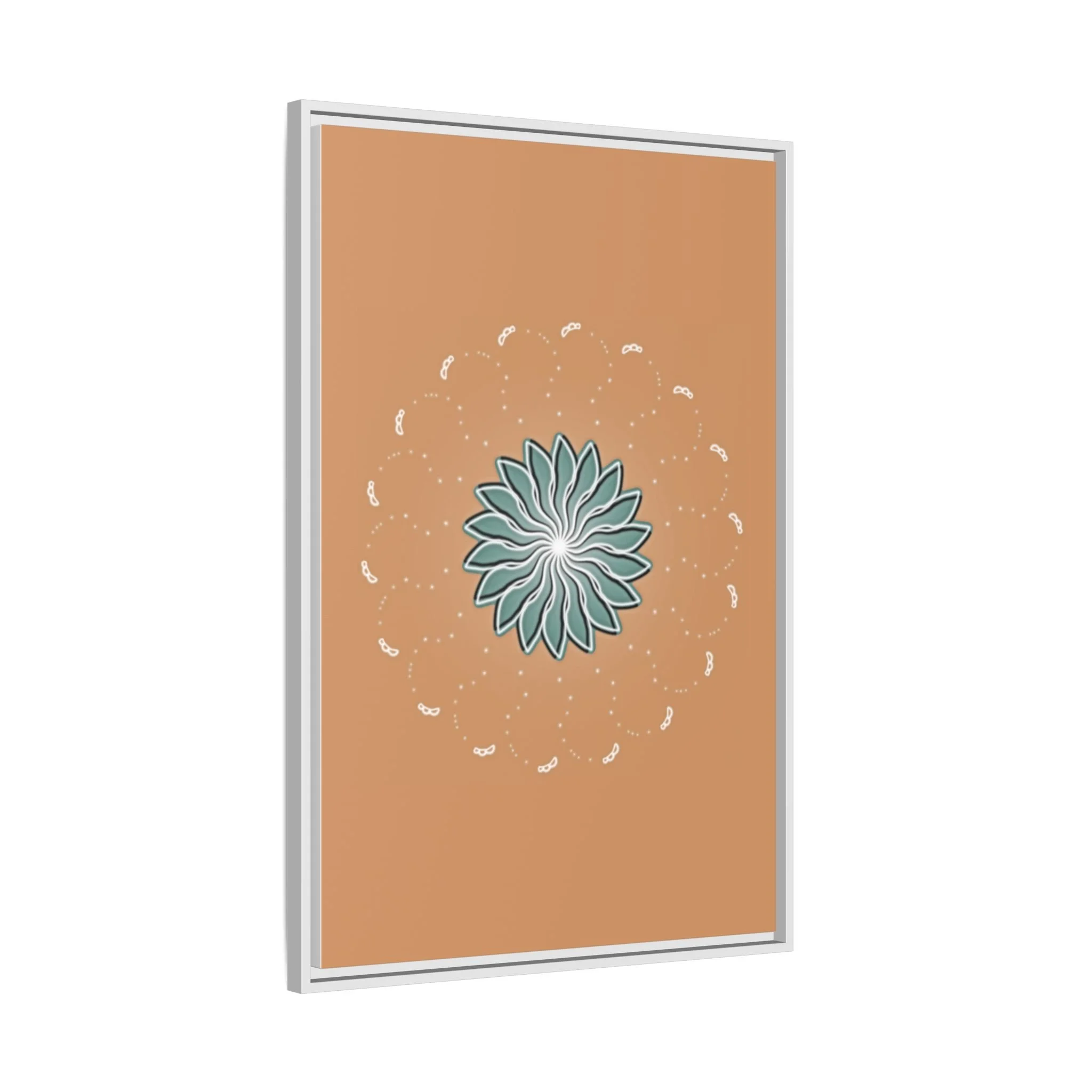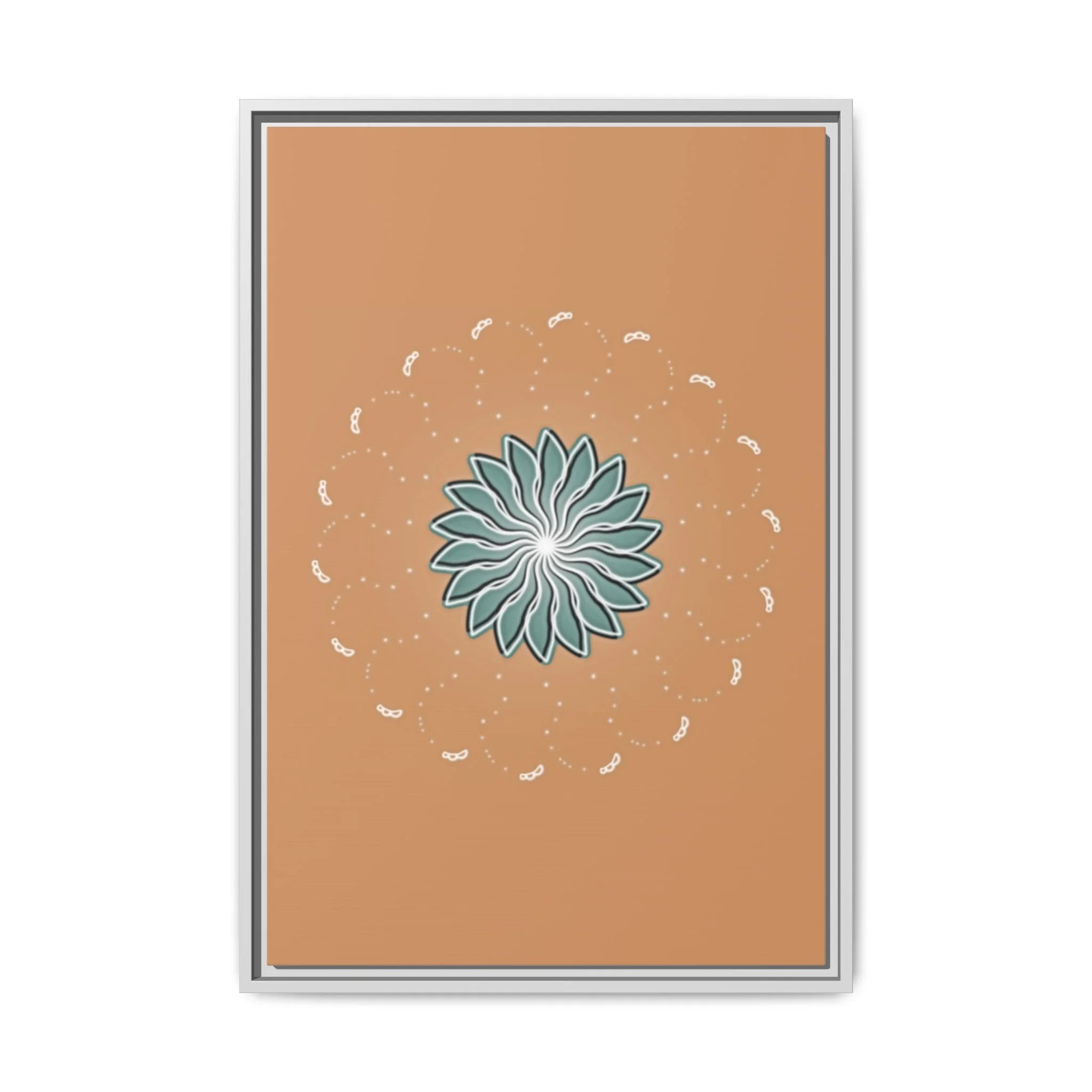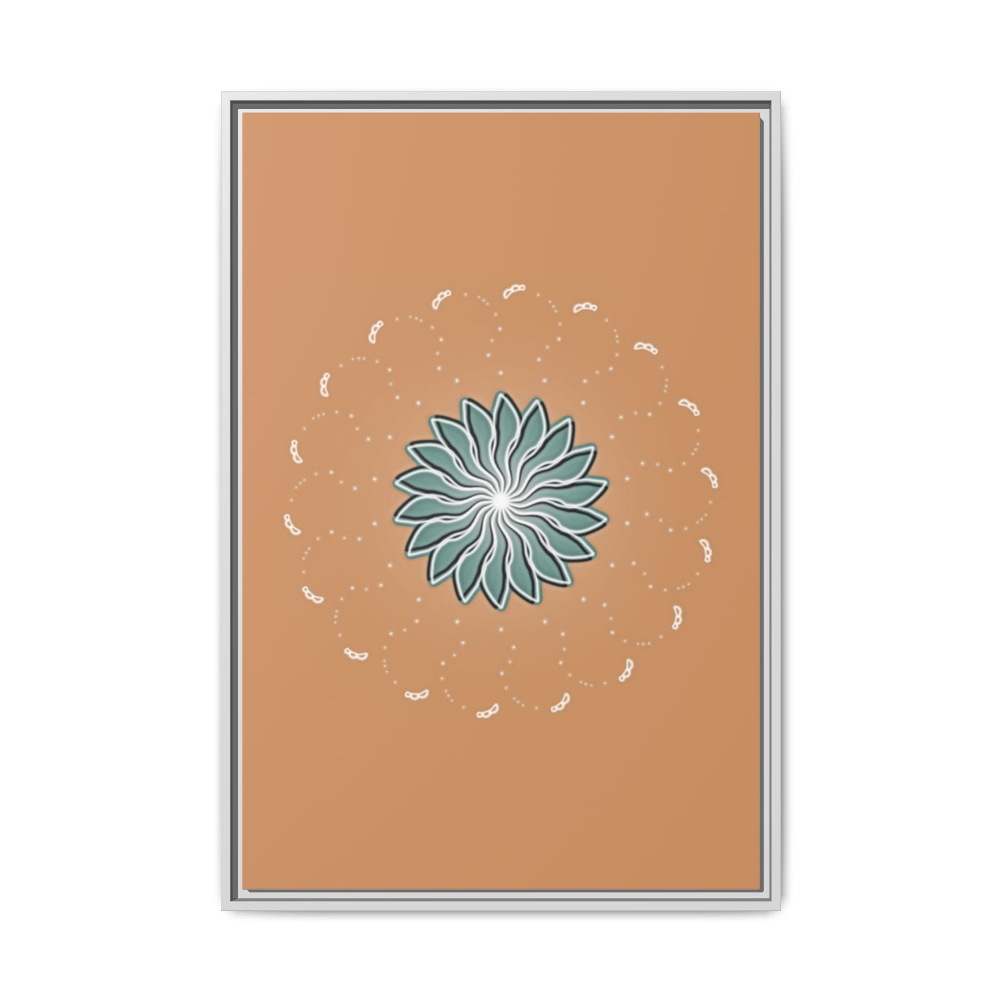 Framed Mandala Canvas Wall Art — Terracotta Teal Blossom Print
