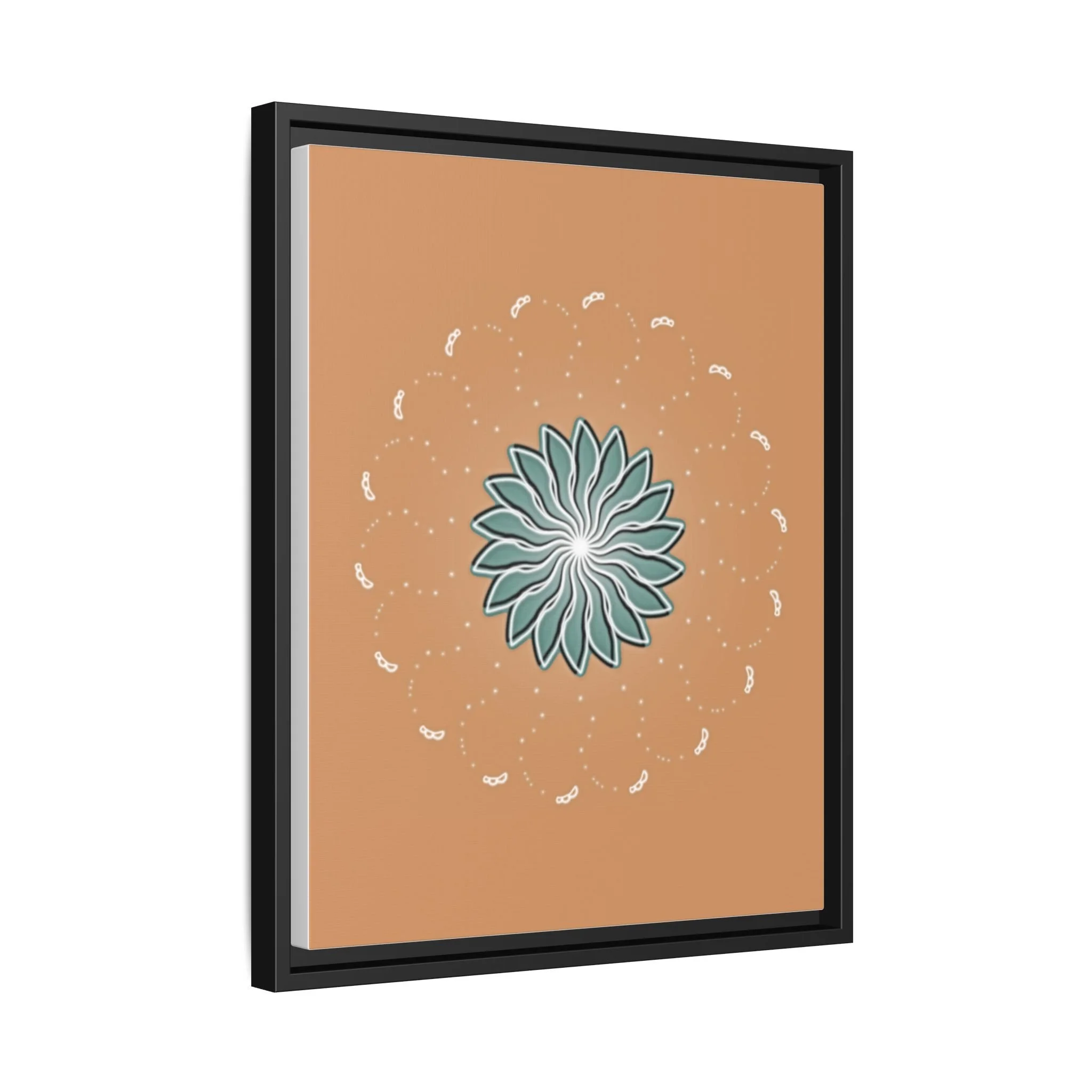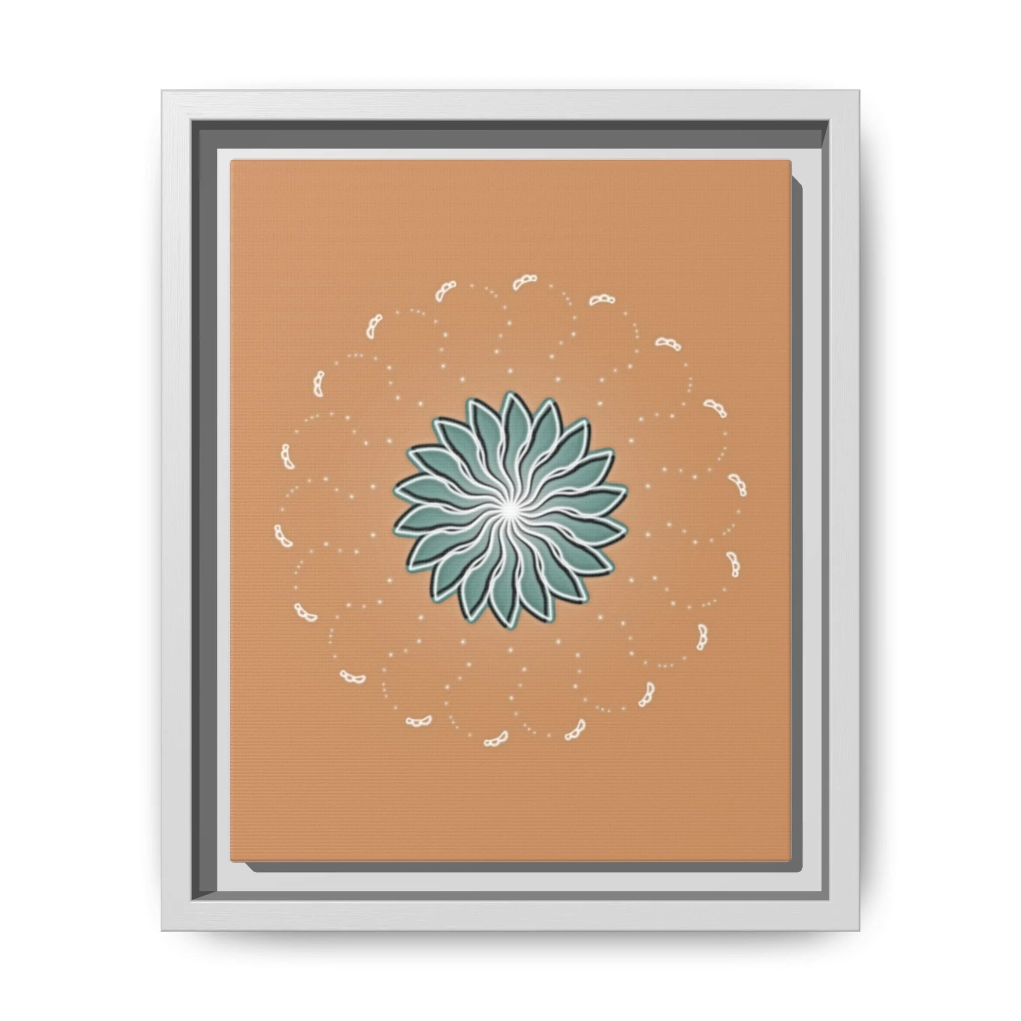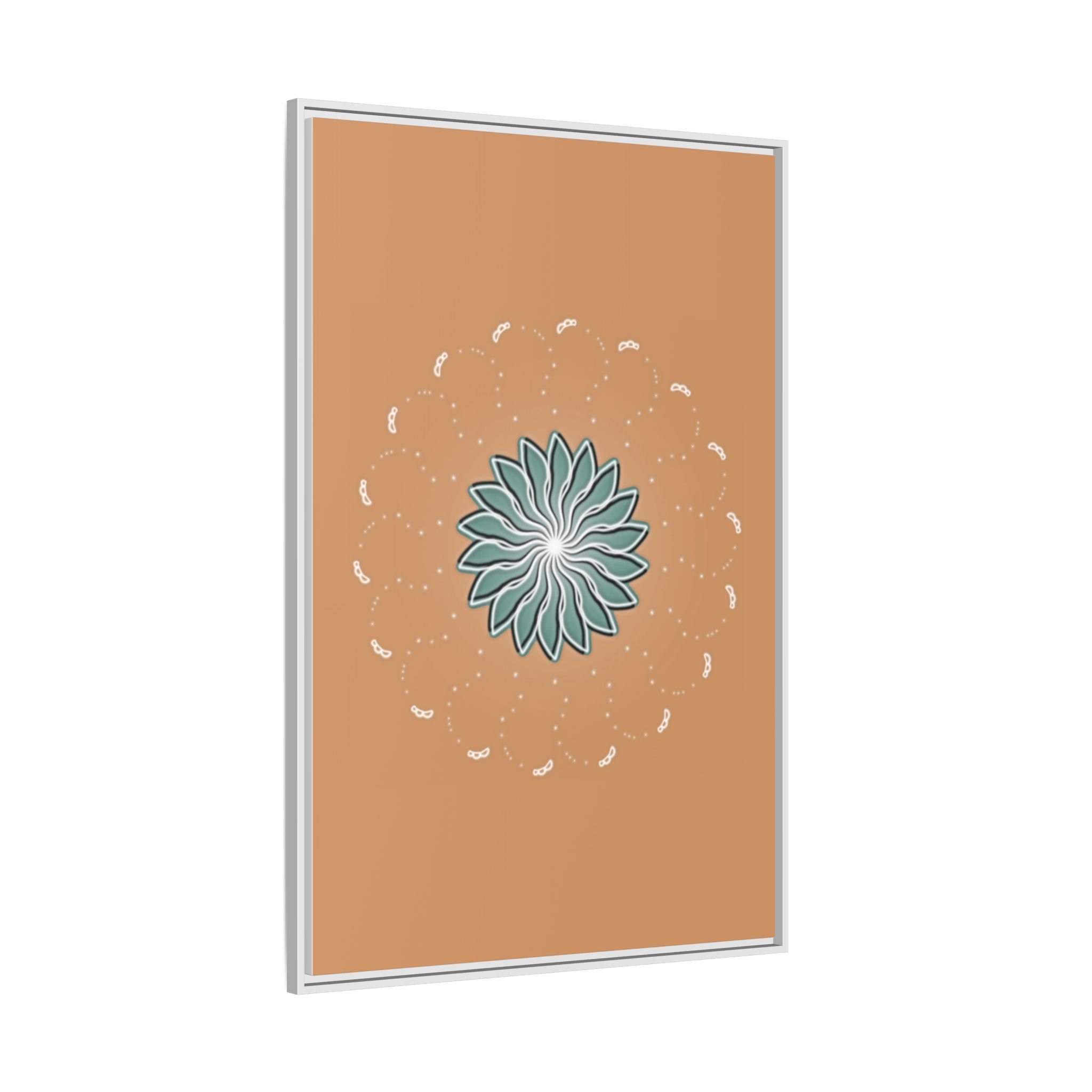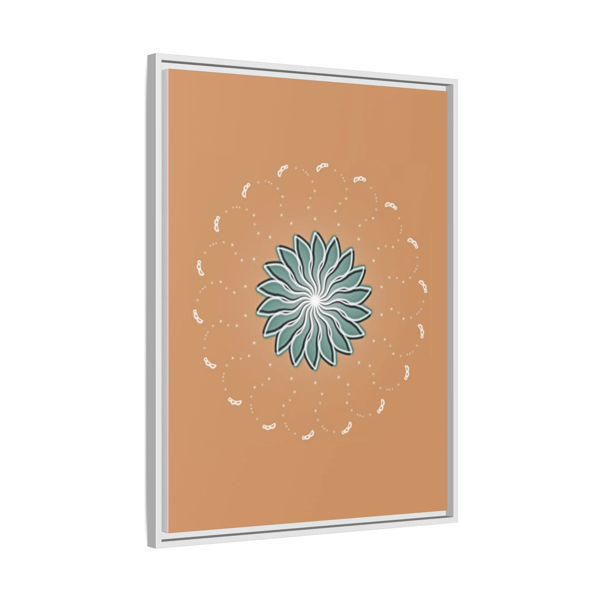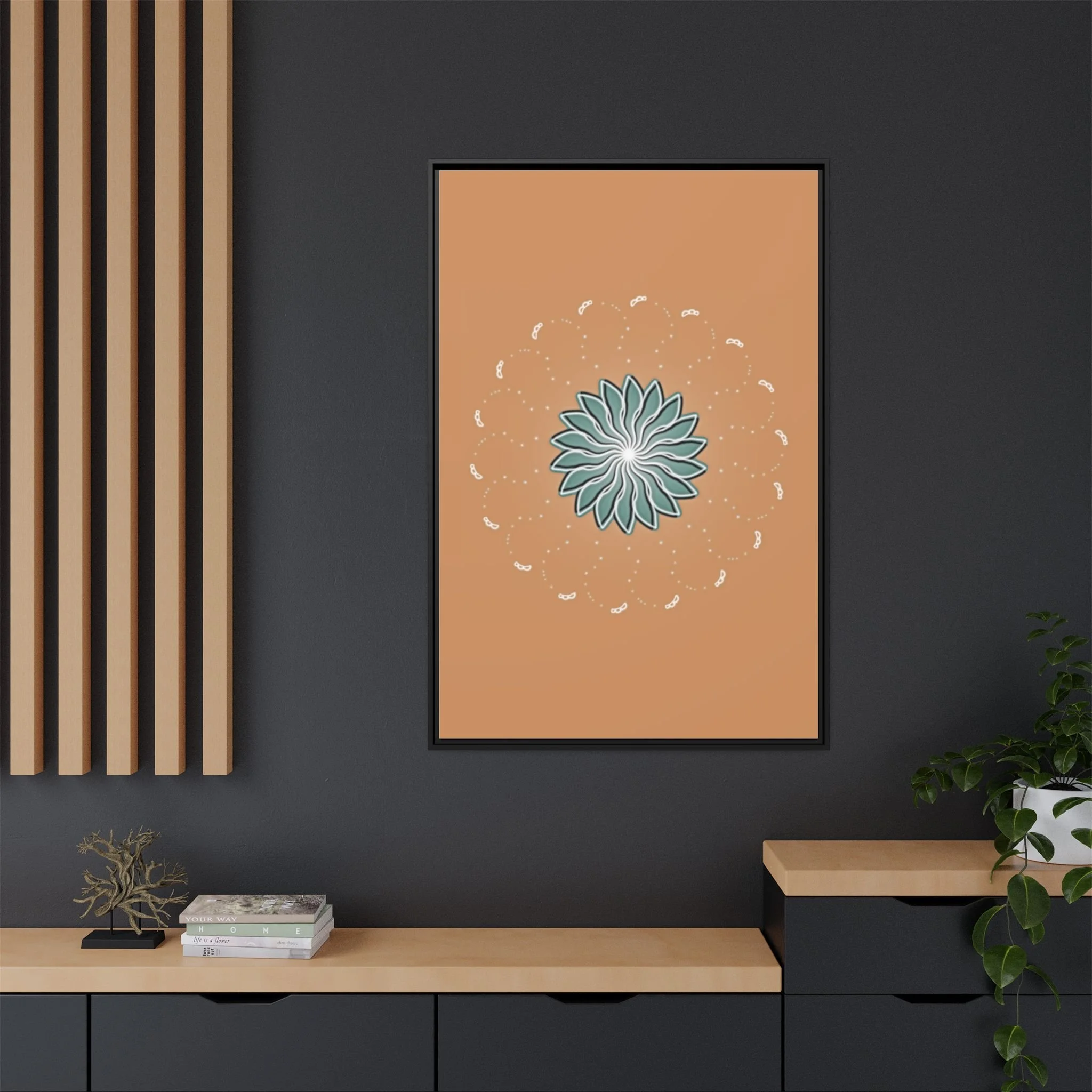 Framed Mandala Canvas Wall Art — Terracotta Teal Blossom Print