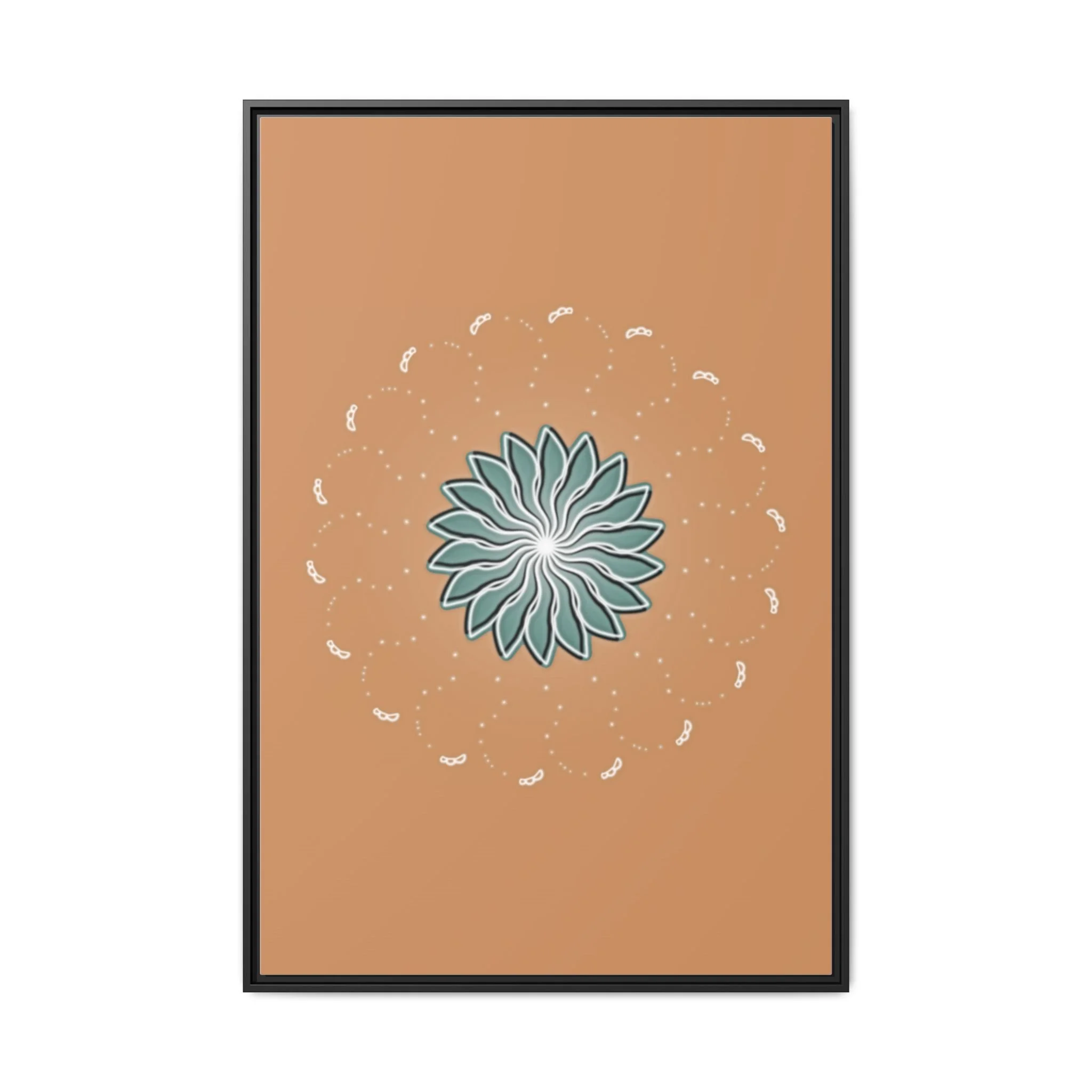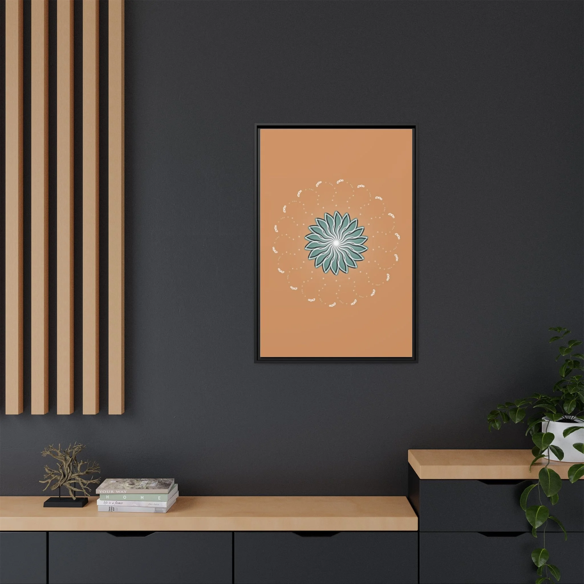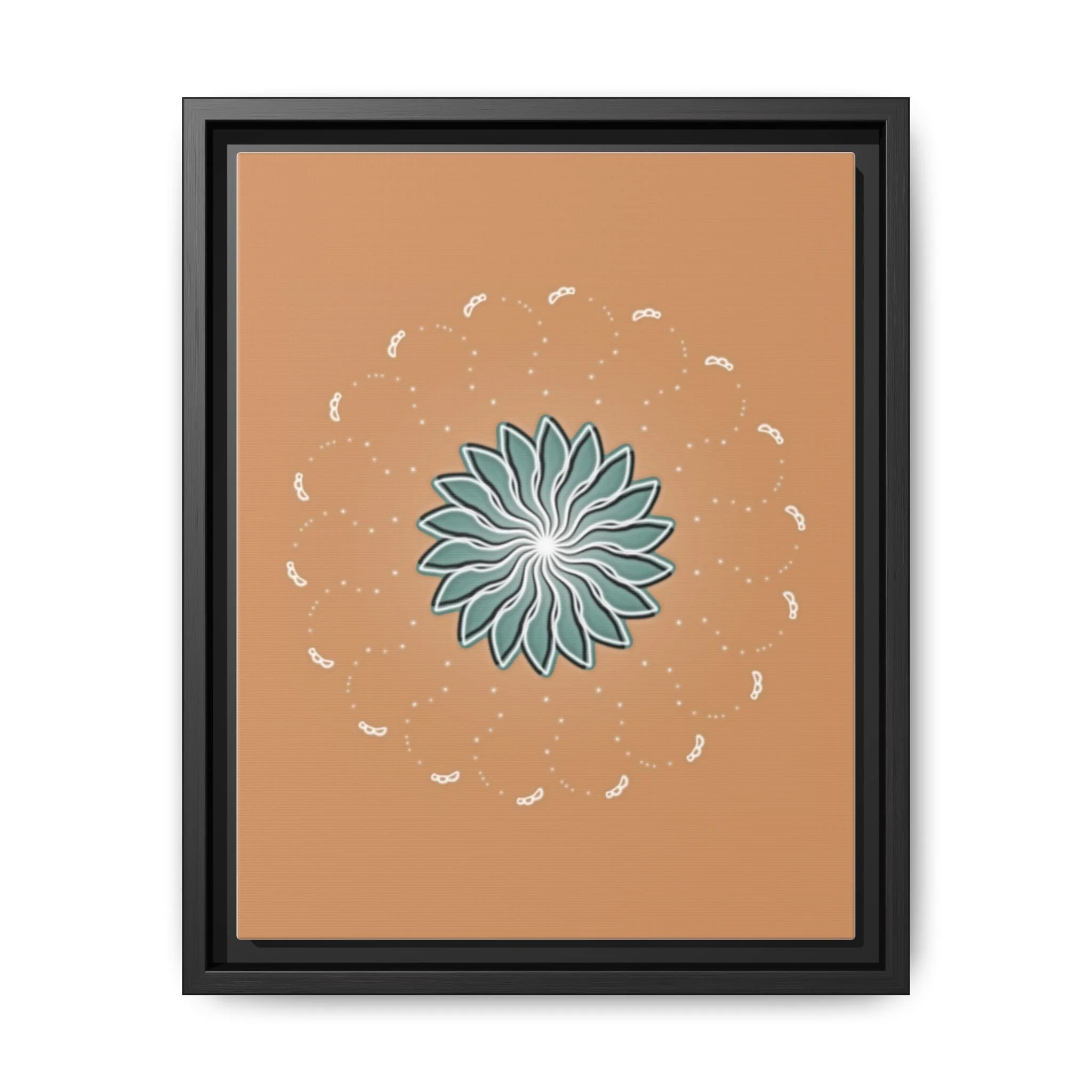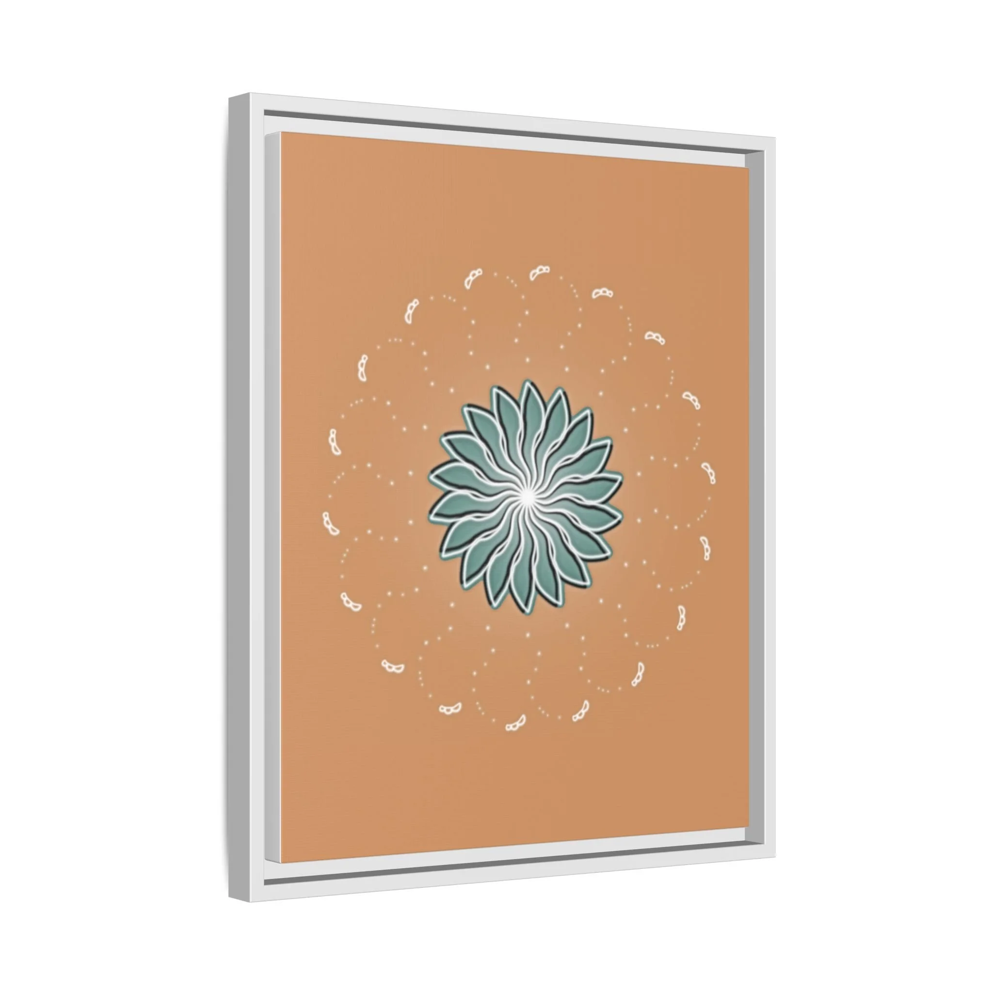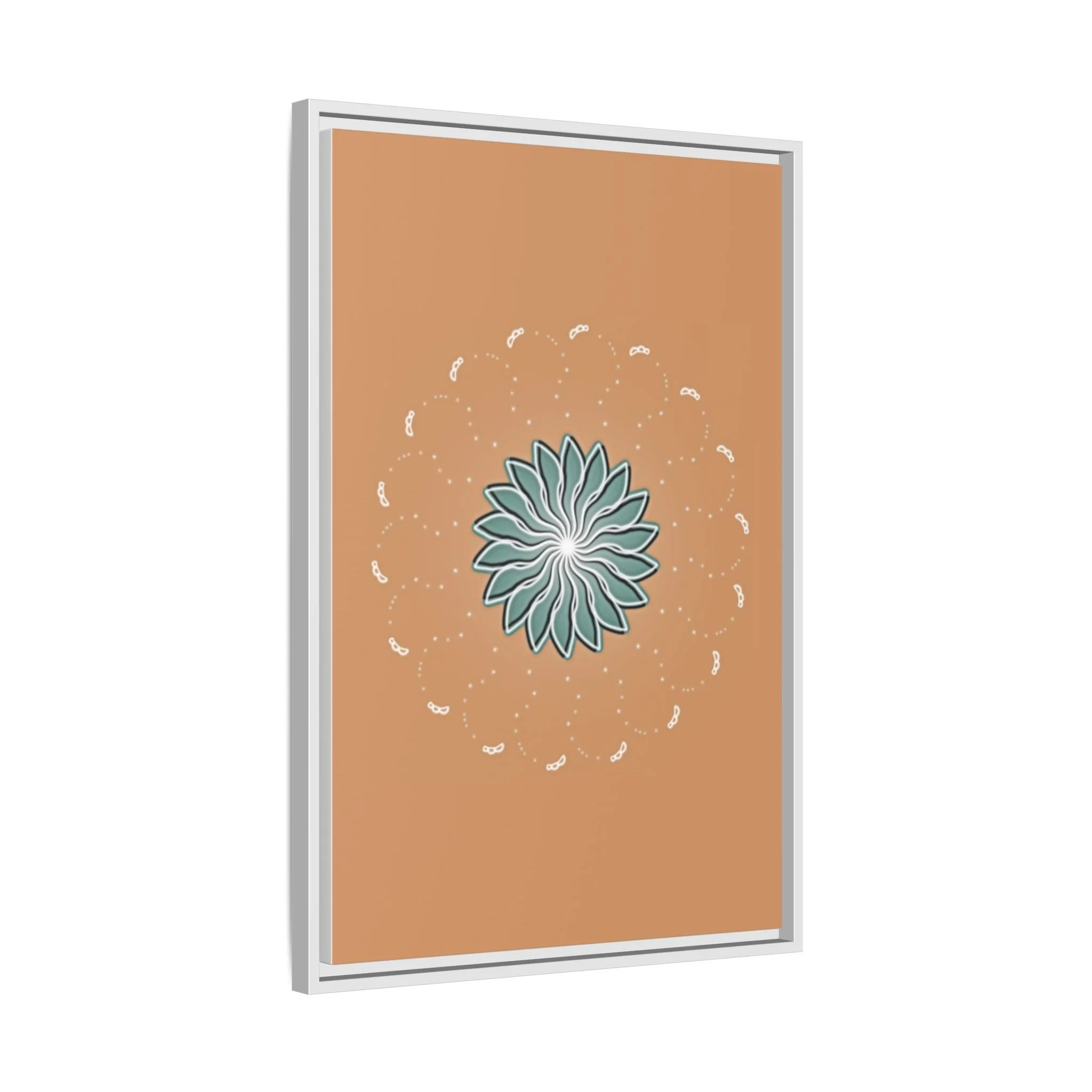 Framed Mandala Canvas Wall Art — Terracotta Teal Blossom Print