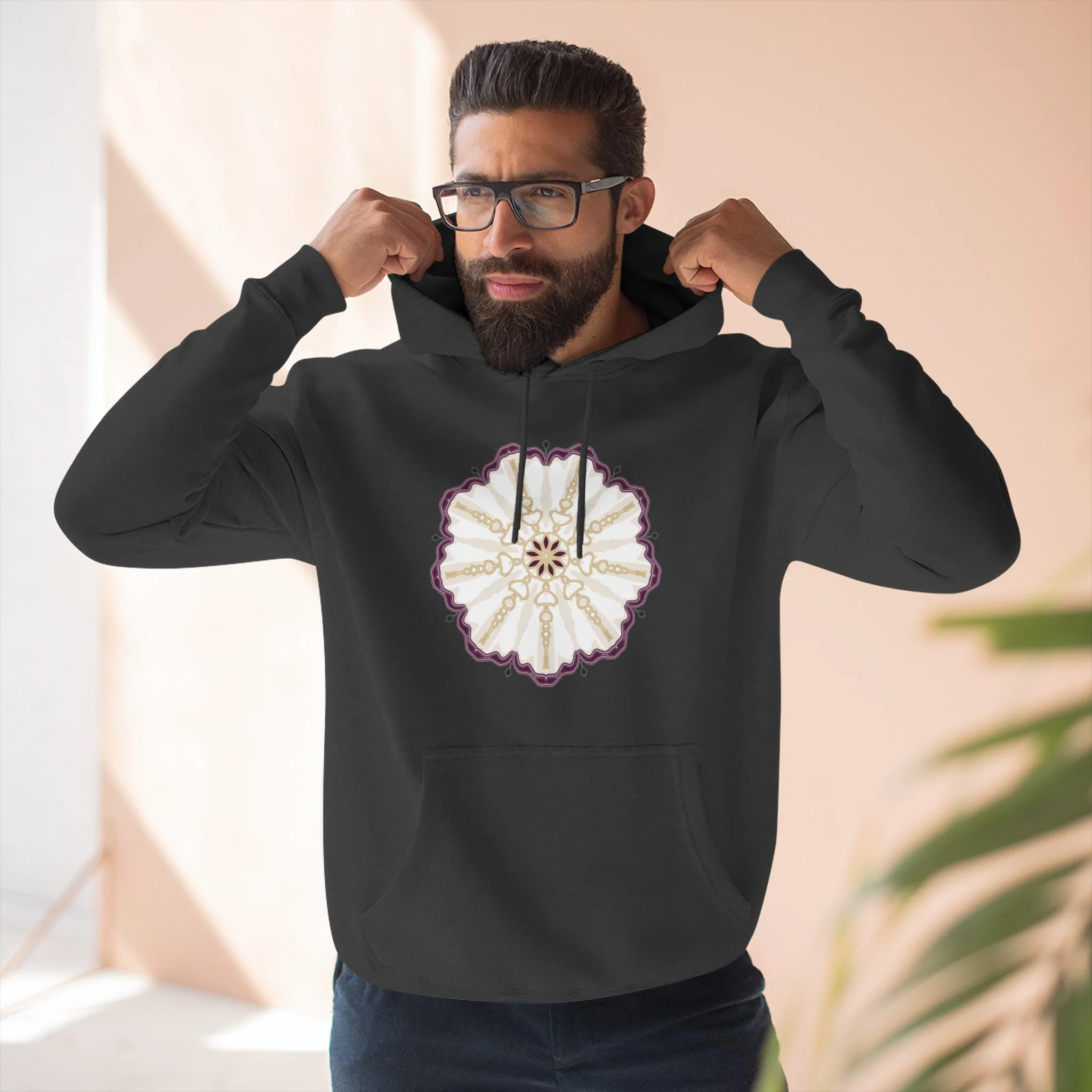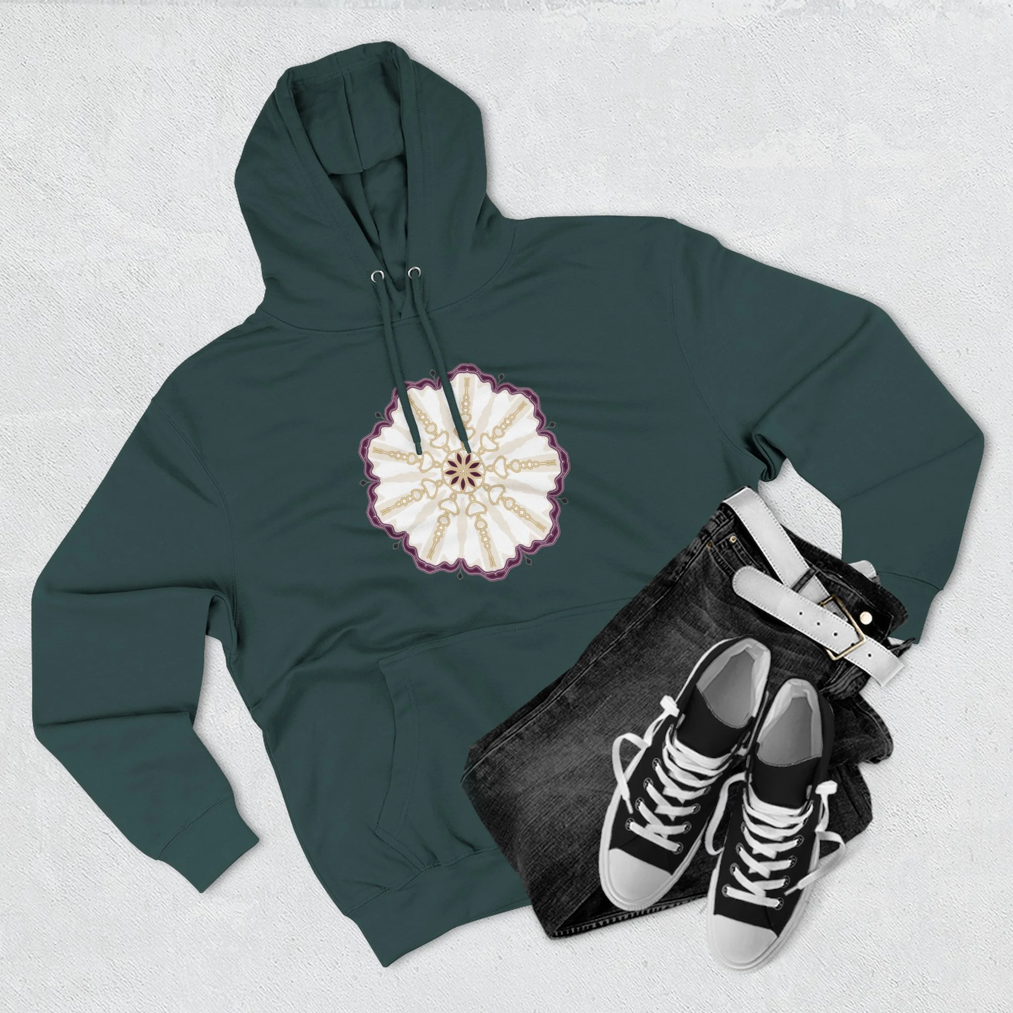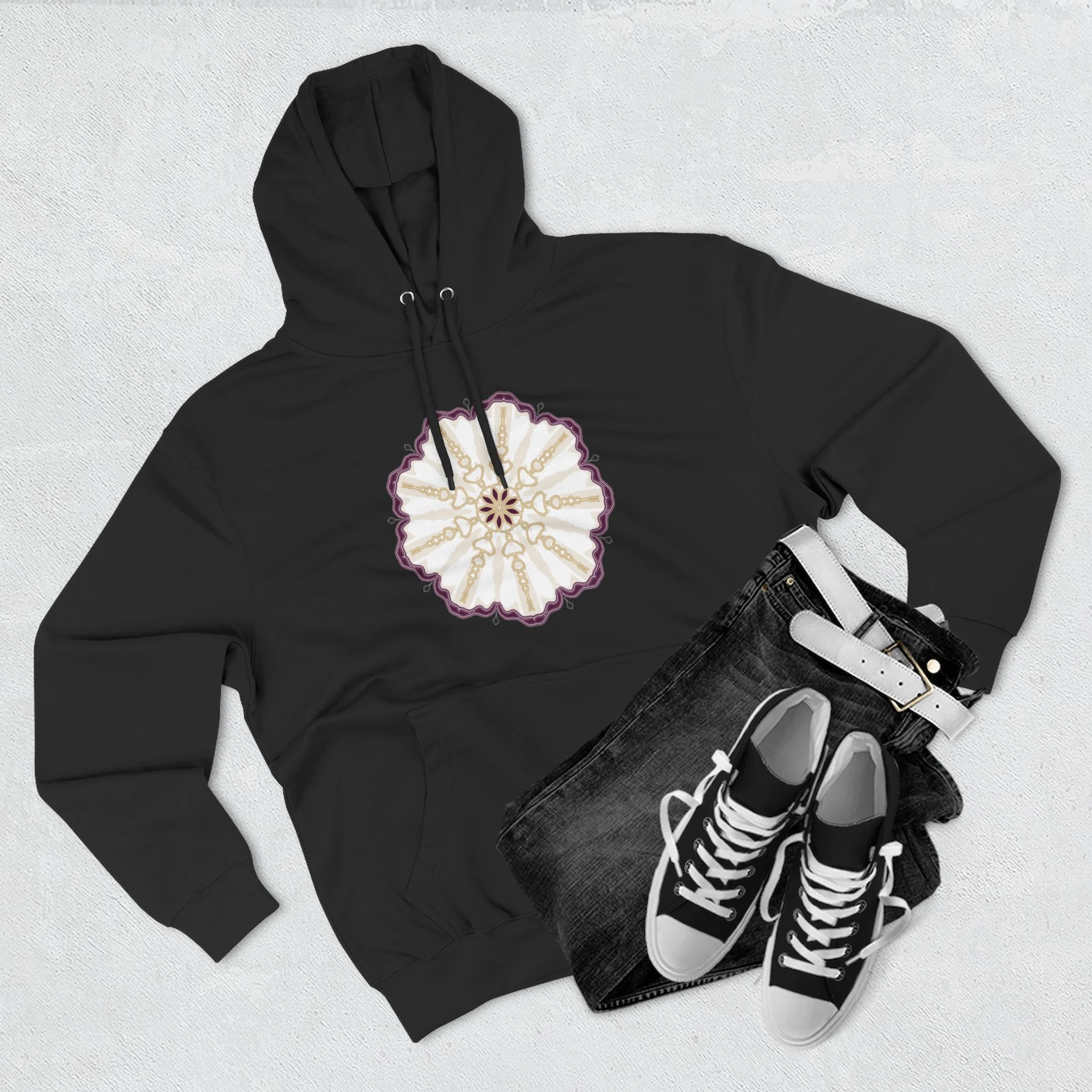 Mandala Blossom Hoodie — Minimal Floral Centerpiece Fleece Hoodie