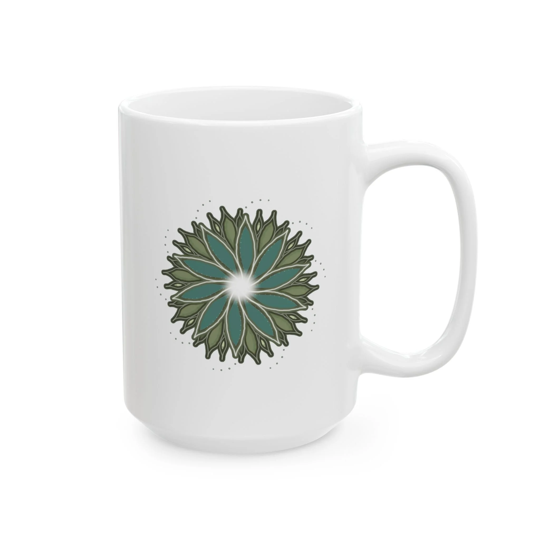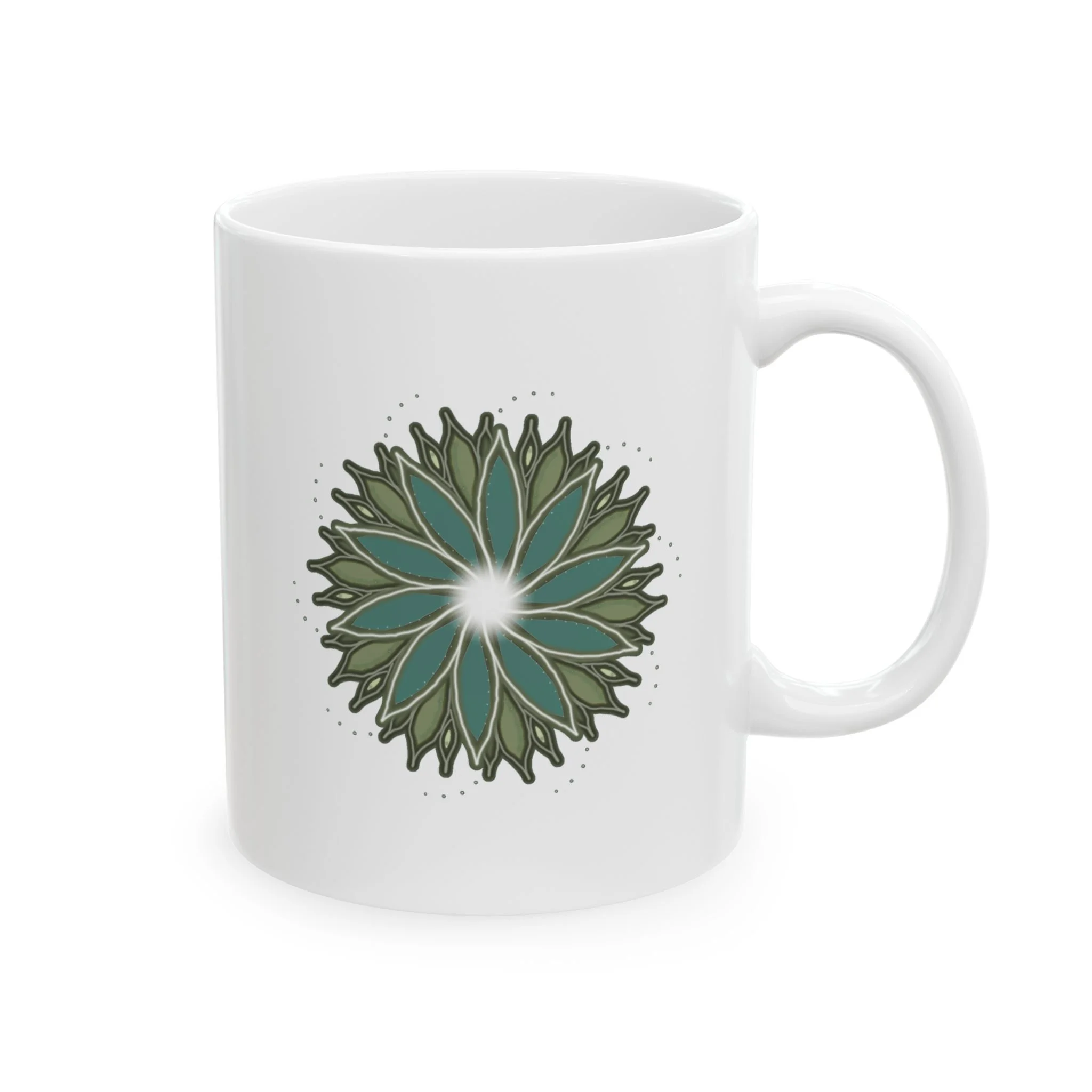 Mandala Ceramic Mug — Boho Green Floral Coffee Cup (11oz, 15oz)