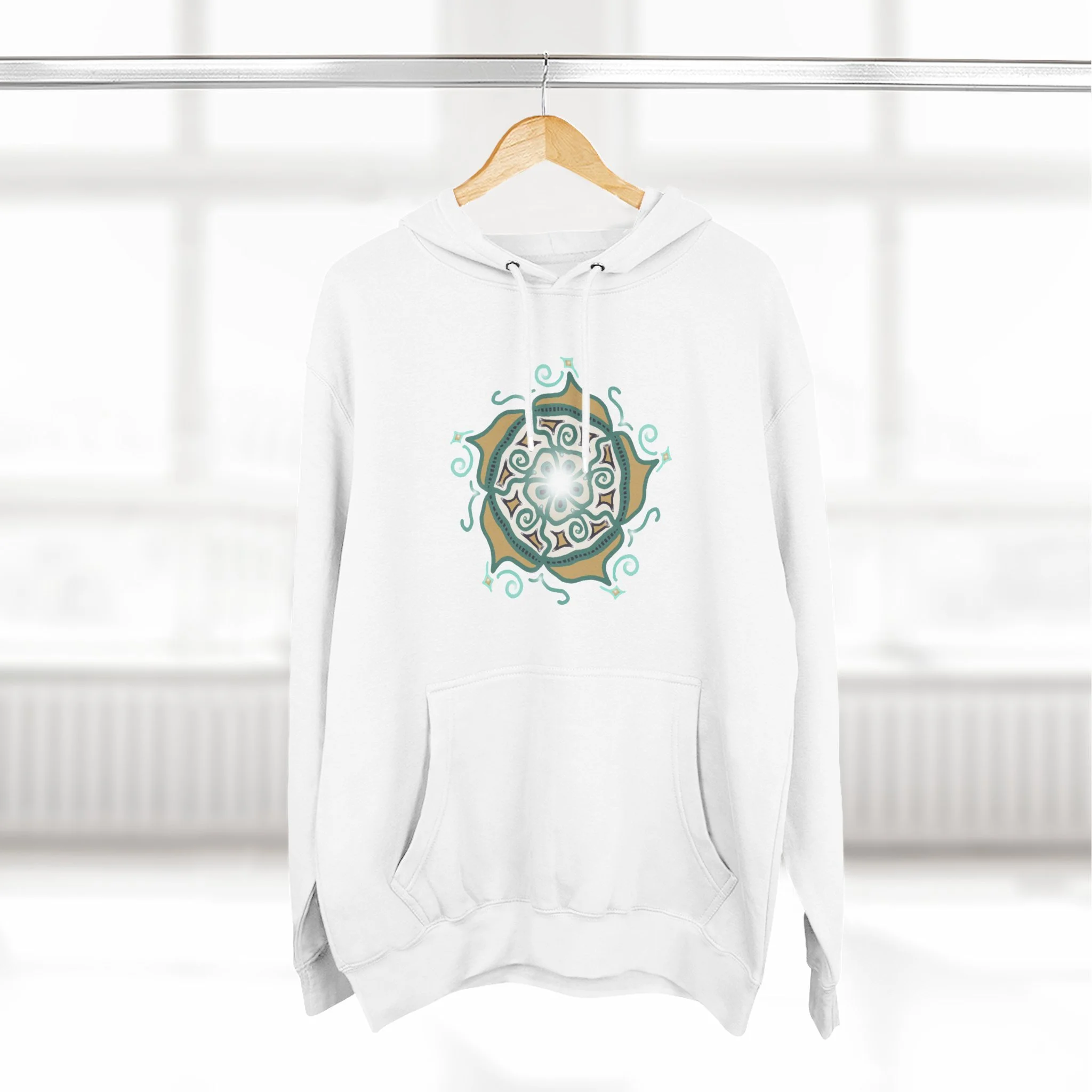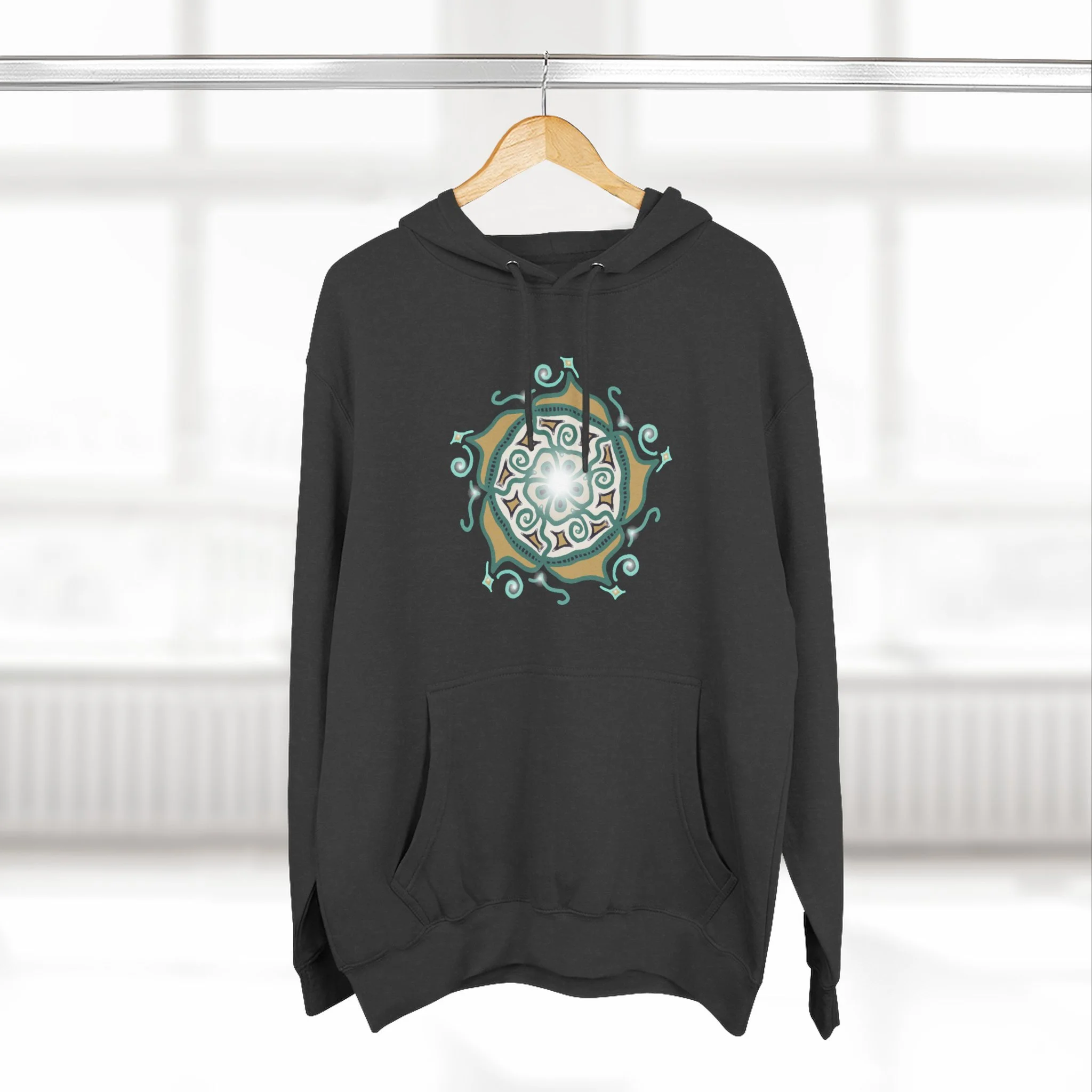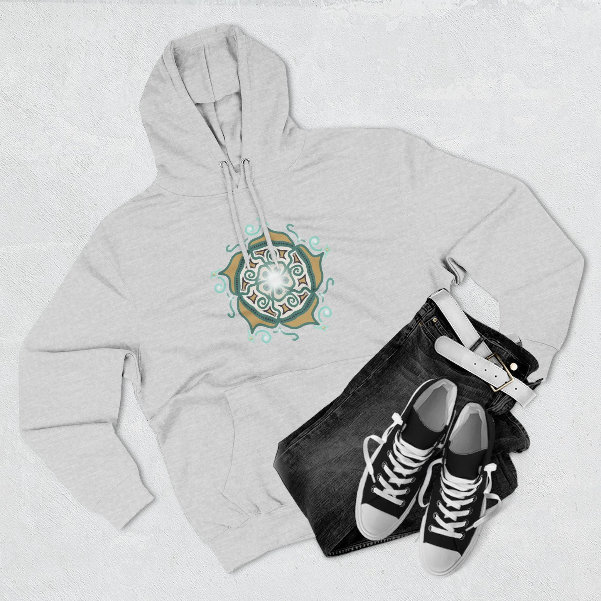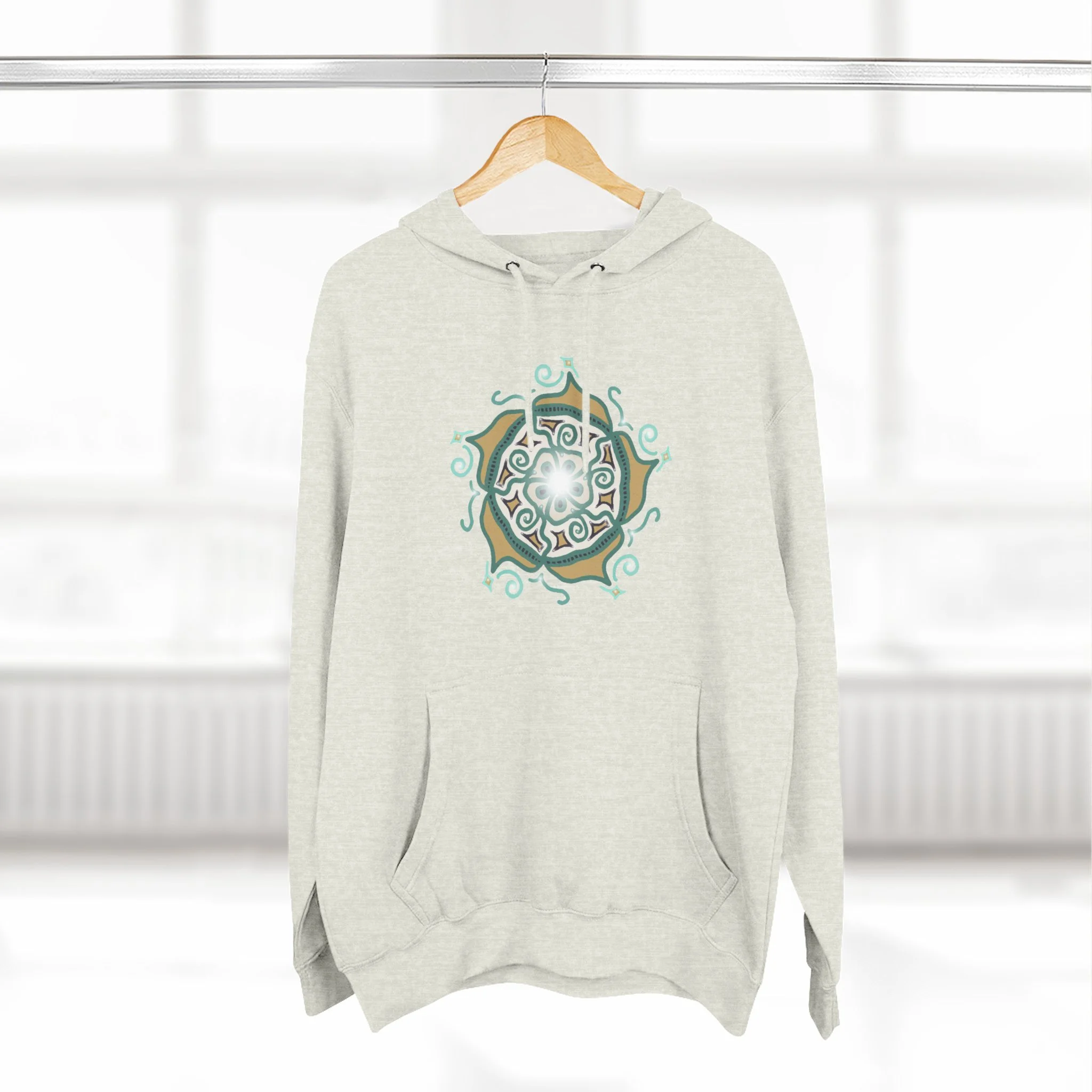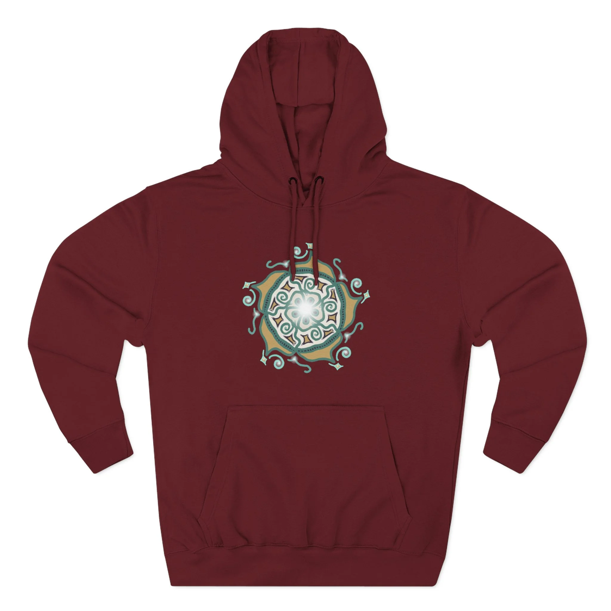 Mandala Crest Hoodie — Boho Geometric Fleece Pullover