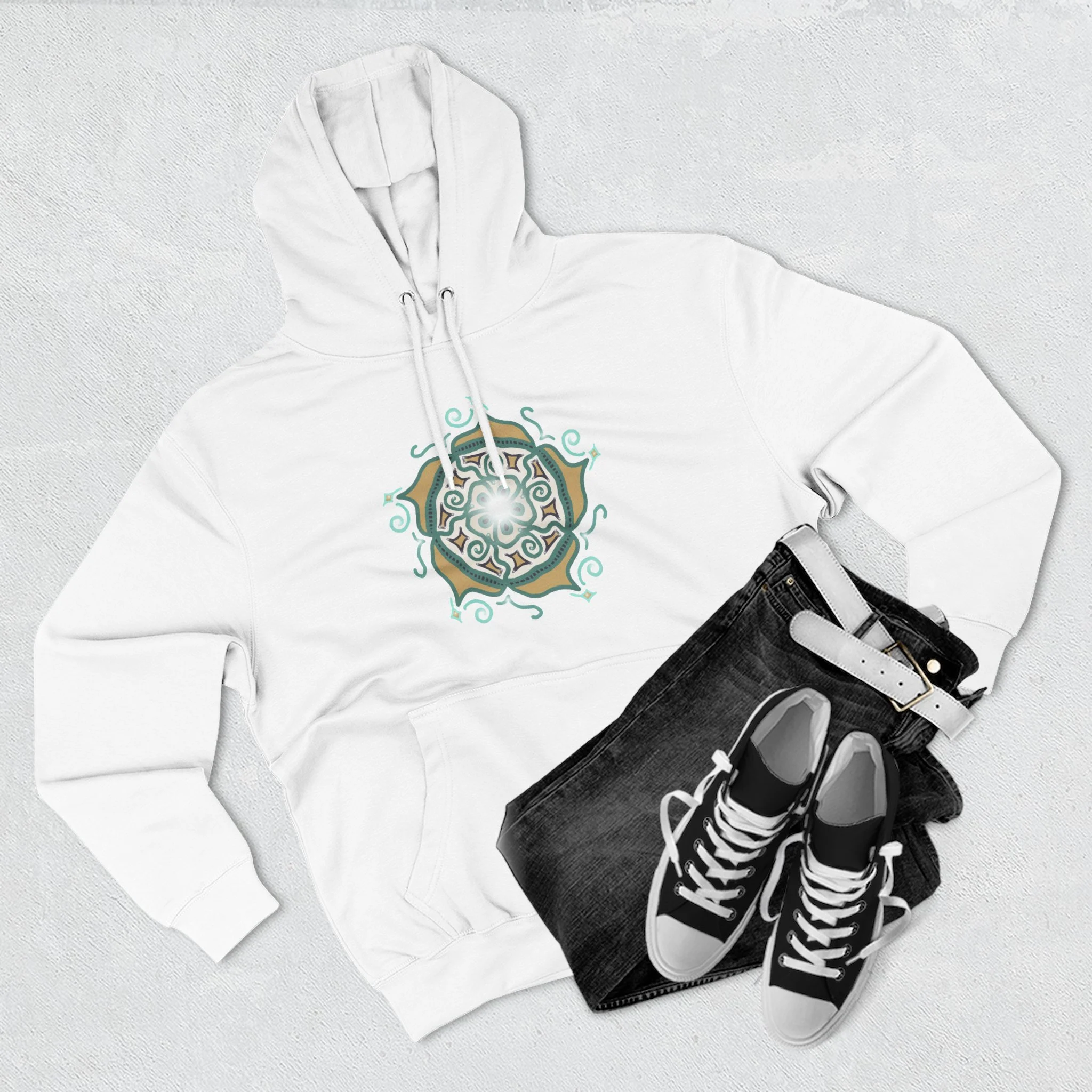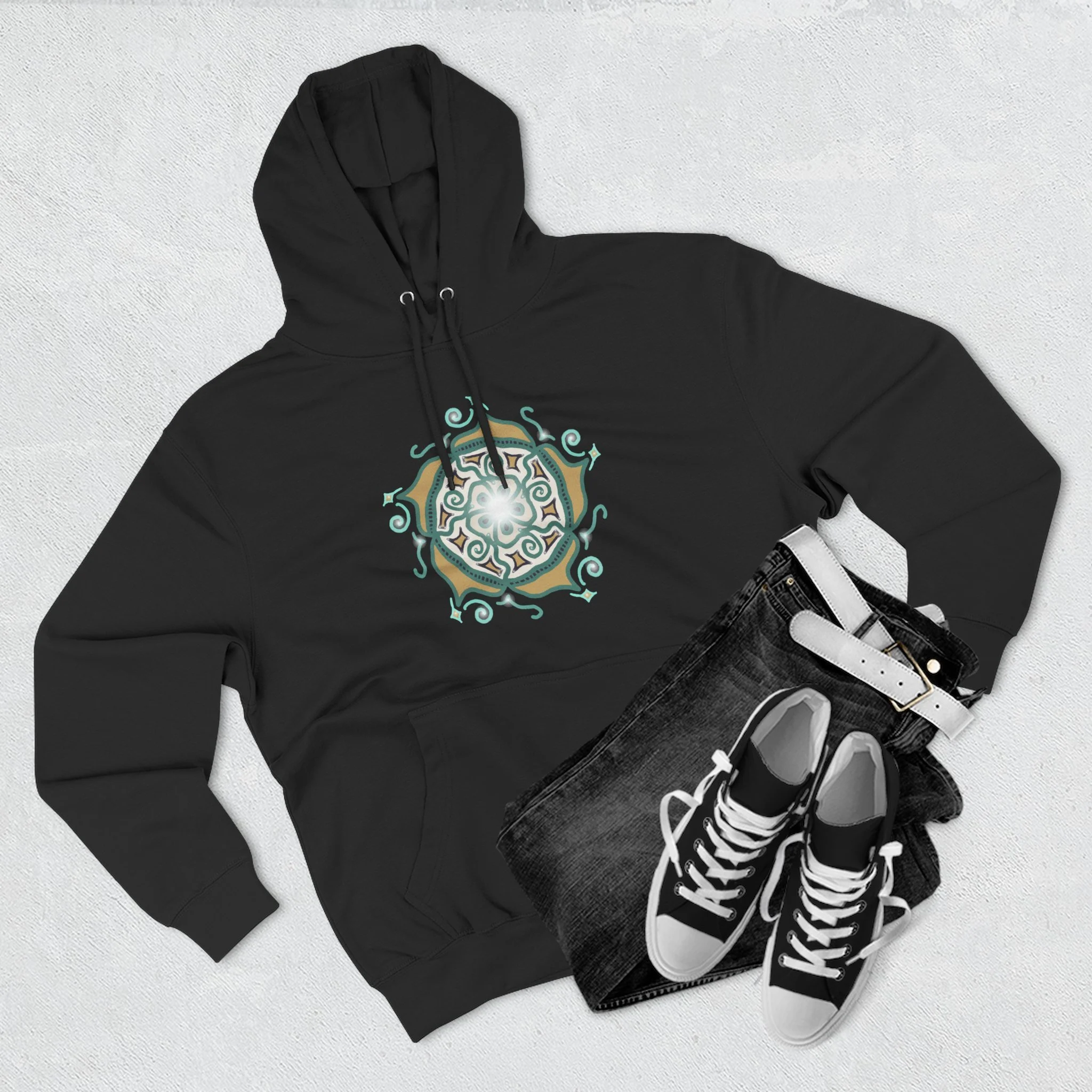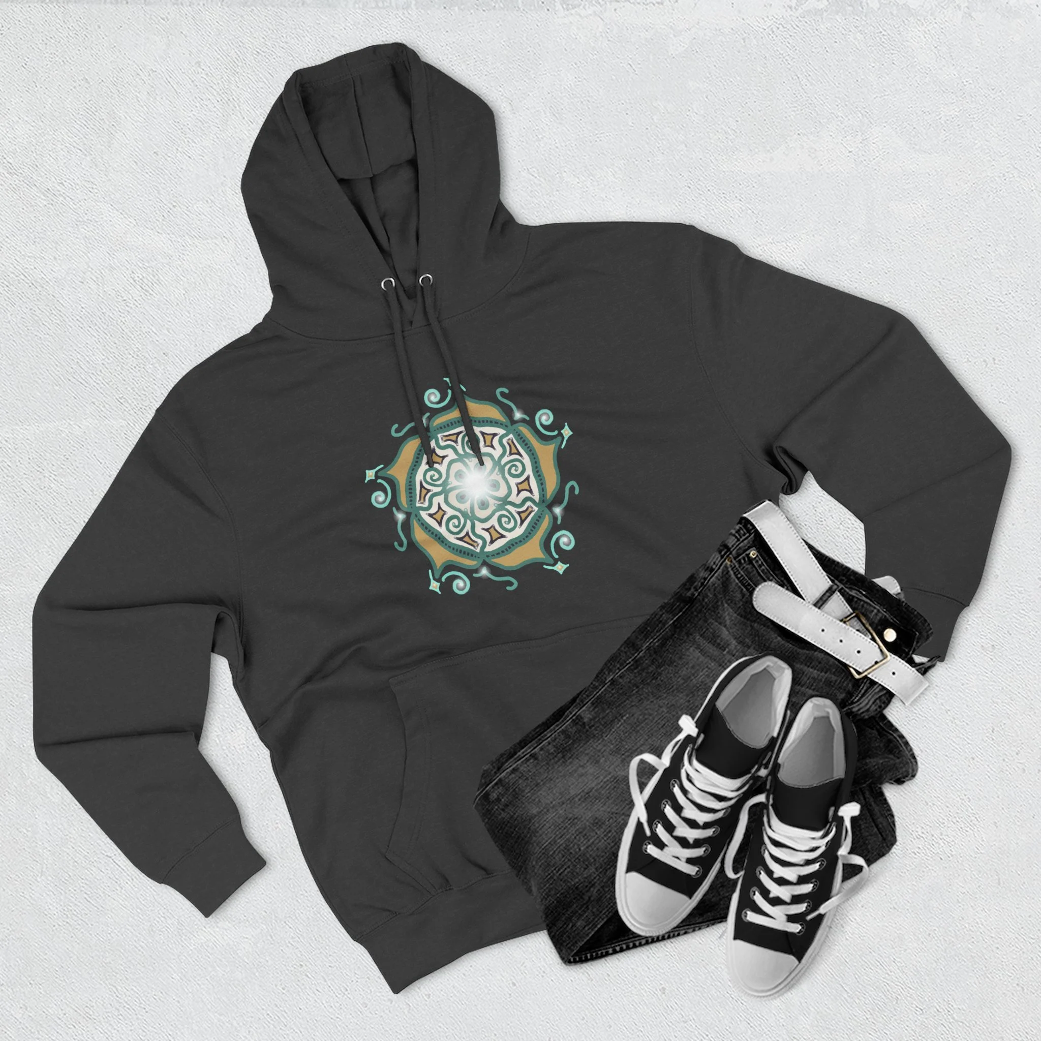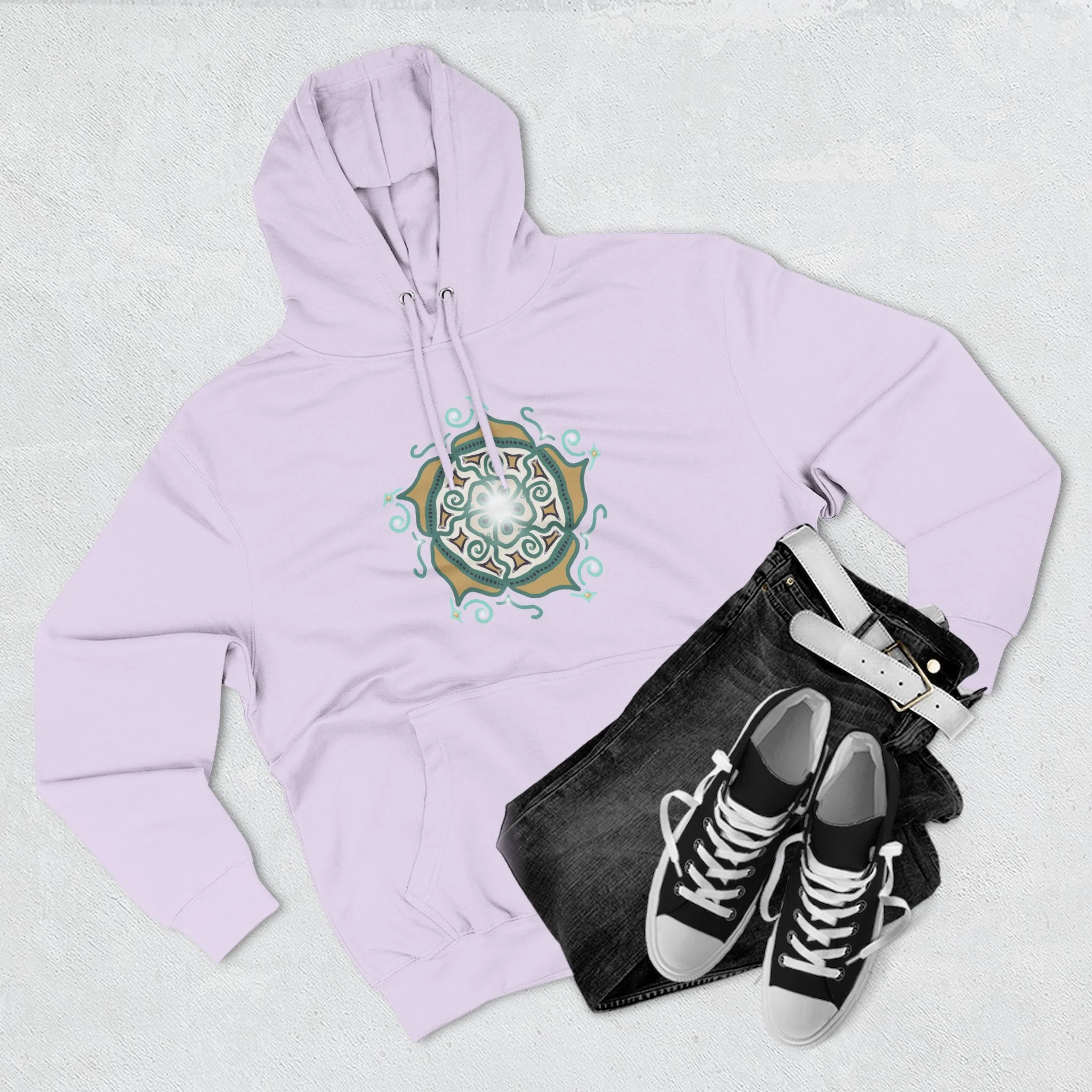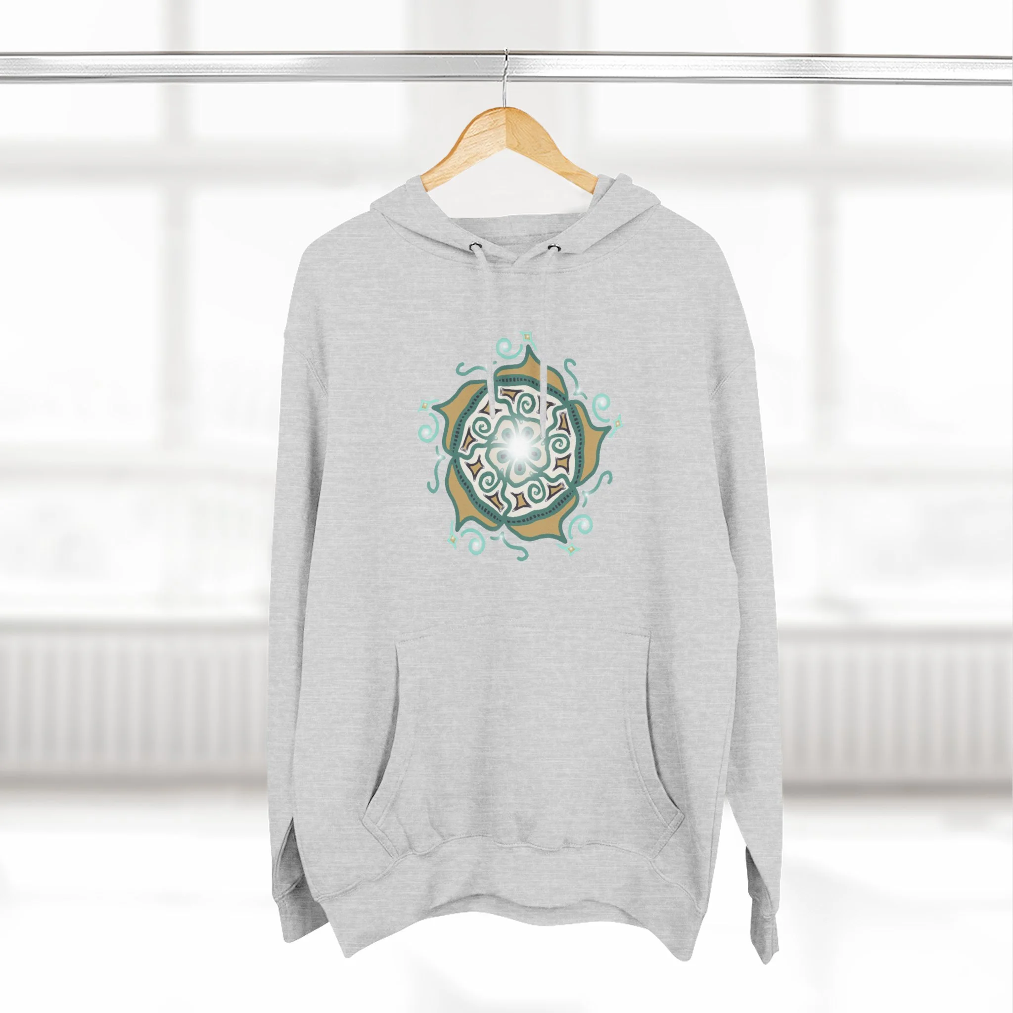 Mandala Crest Hoodie — Boho Geometric Fleece Pullover