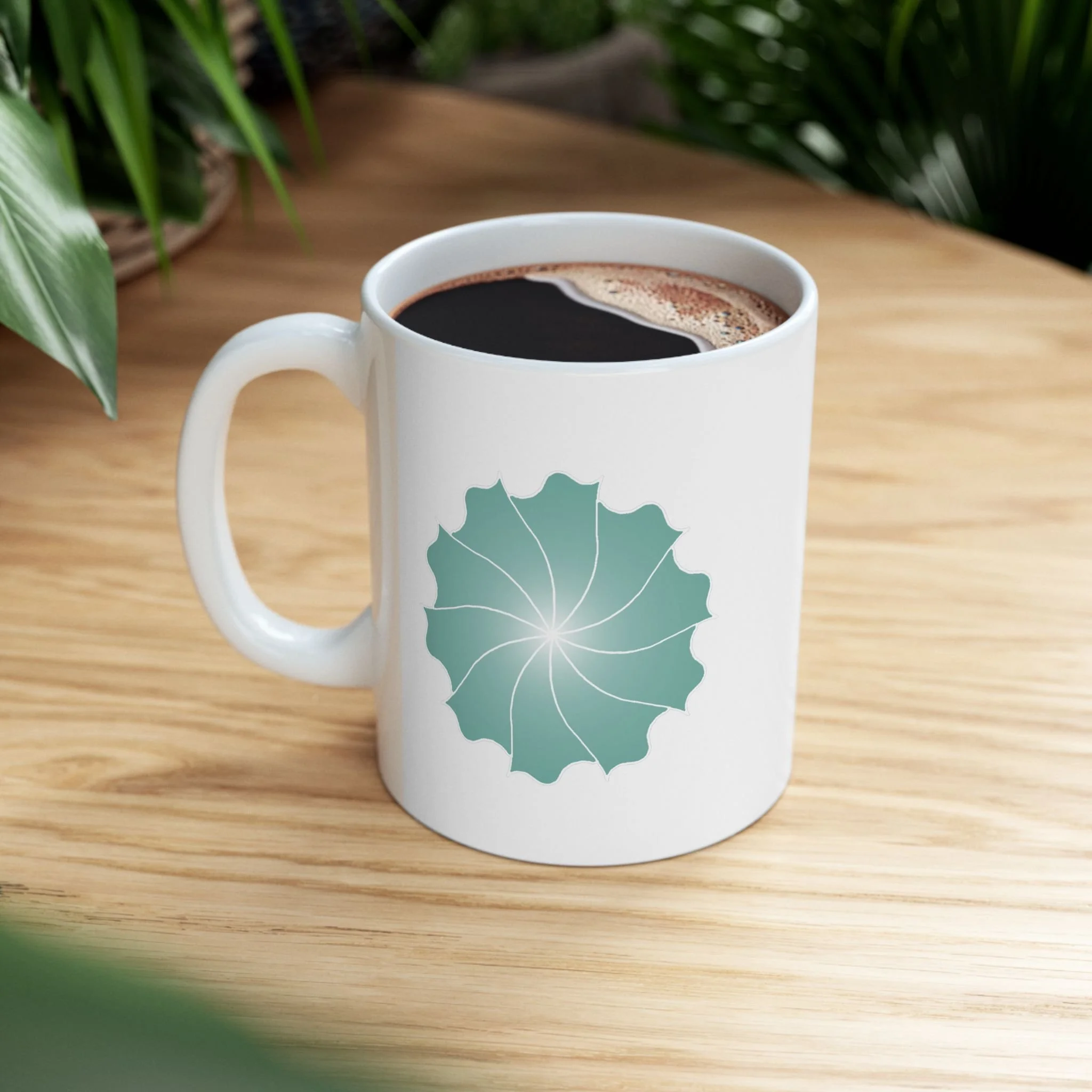 Morning rituals meet coastal calm with this glossy ceramic mug. Clean white ceramic wraps a soft seafoam shell motif that peeks from each side, bringing a quiet, seaside energy to coffee, tea, or late-night cocoa. The comfortable C-handle and shiny finish make it easy to hold and display on a cluttered desk or kitchen shelf. Durable, vibrant printing keeps the color true through daily use, while microwave- and dishwasher-safe materials let you sip and reheat without worry. Choose 11oz for a balanced morning cup or 15oz when you need an extra pour of comfort.