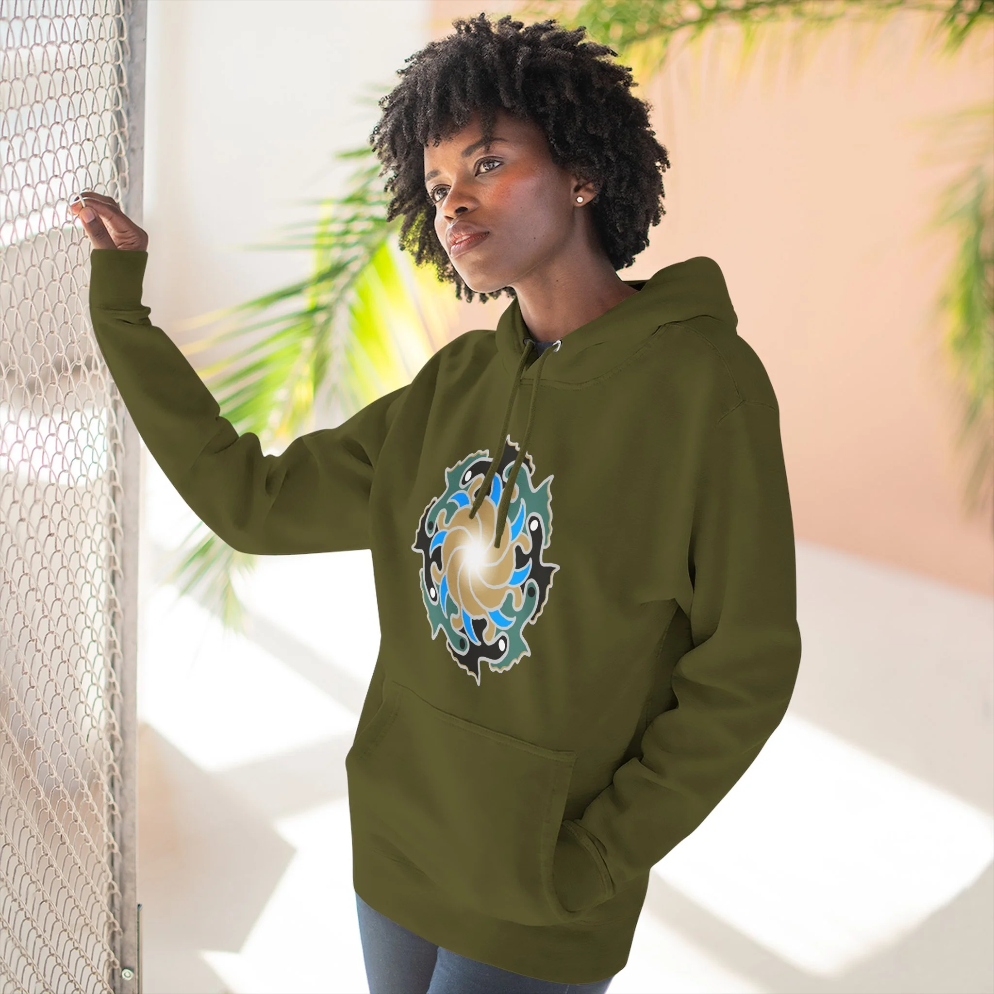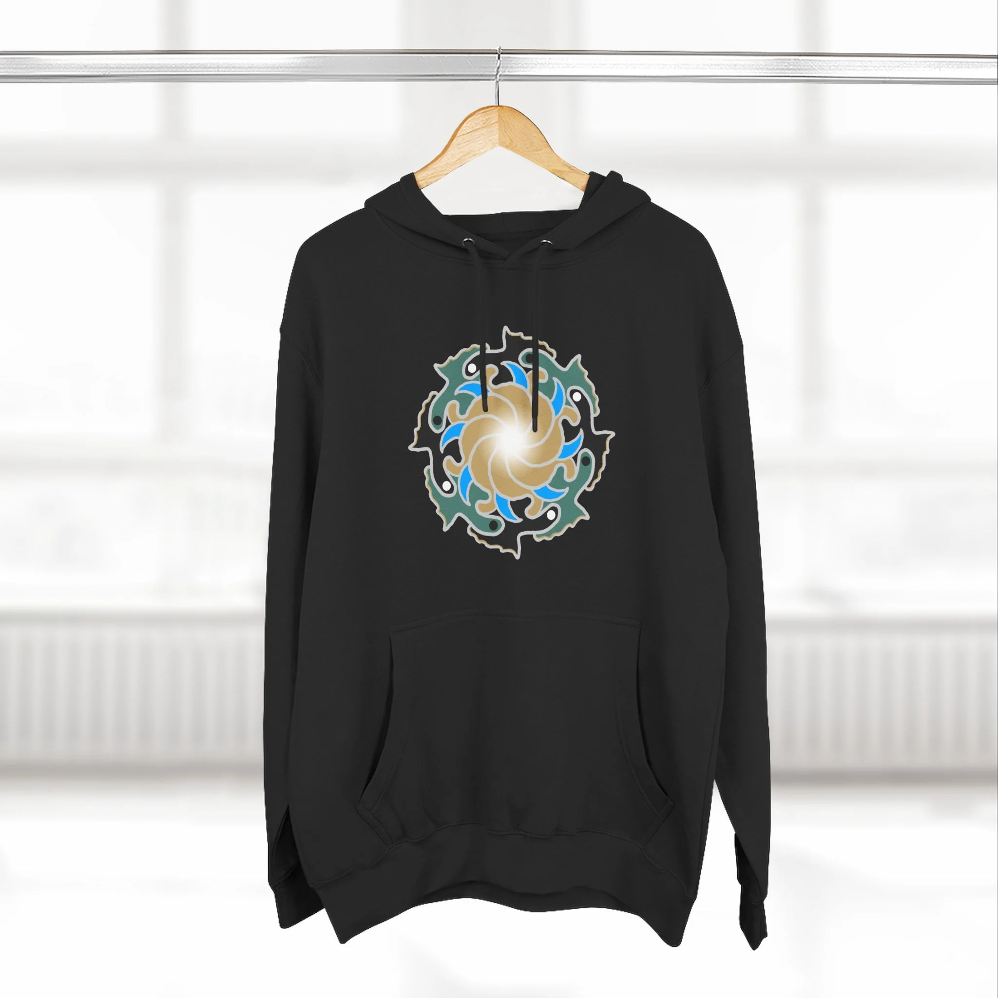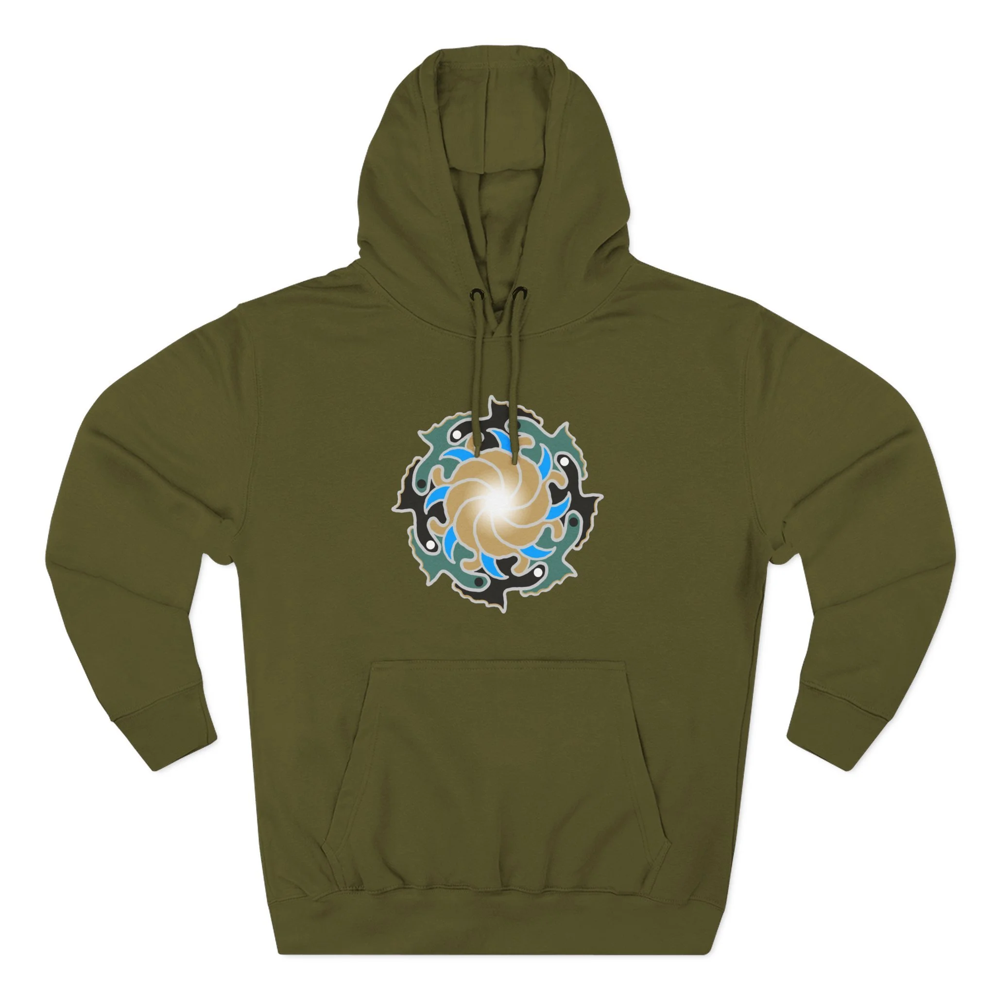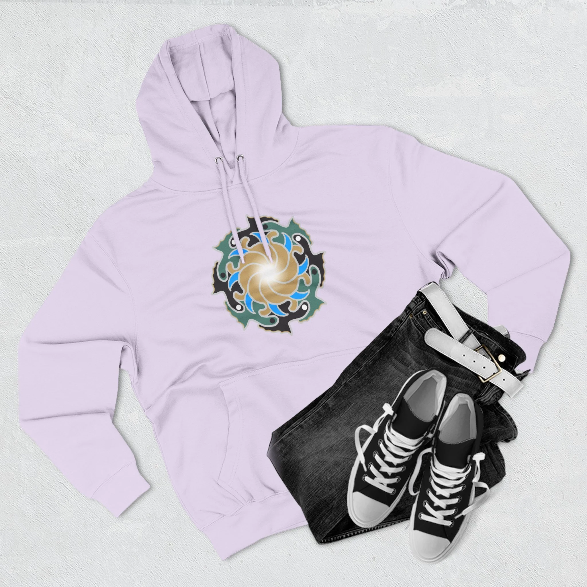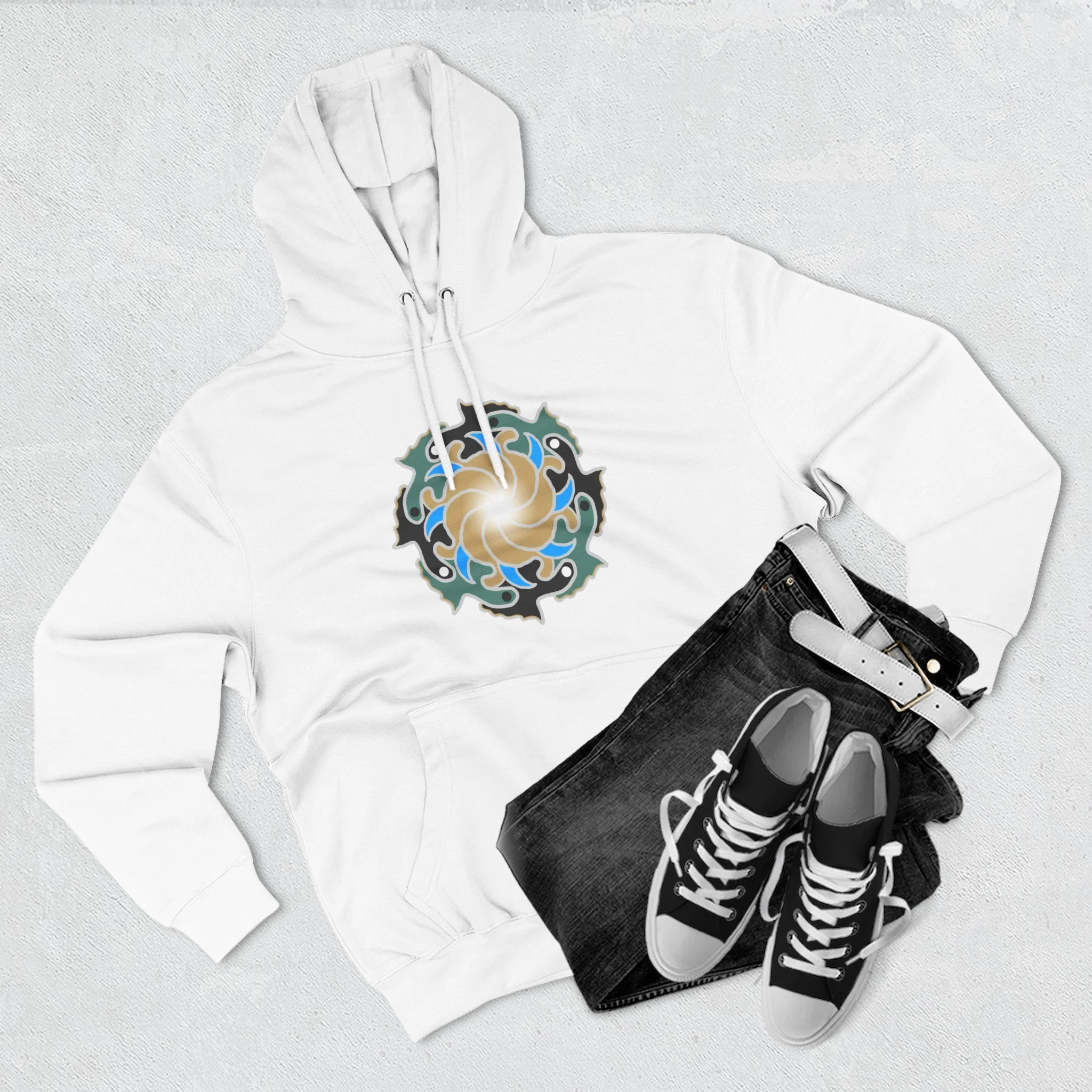 This midweight fleece hoodie brings calm energy to chilly days. The soft, brushed interior and structured hood cradle you while the centered, mandala-inspired emblem adds a quiet focal point — like a small ritual you slip into before heading out. The roomy kangaroo pocket keeps hands warm and phone tucked away. Thoughtful construction (twill neck tape, double-needle seams, and minimal shrinkage) means this hoodie wears in, not out. It sits comfortably in everyday rhythms: layered over a tee for morning coffee, pulled on after evening walks, or worn while sketching, journaling, or settling in with a book.