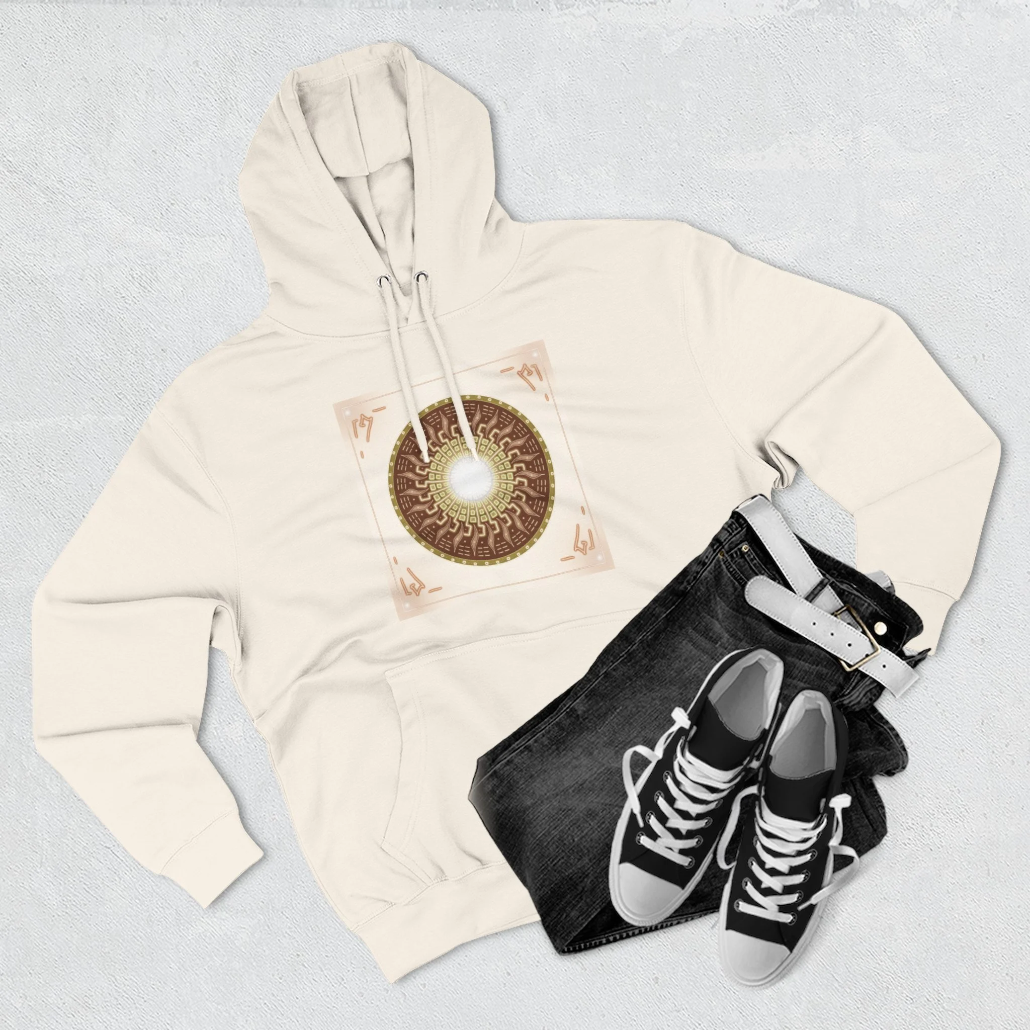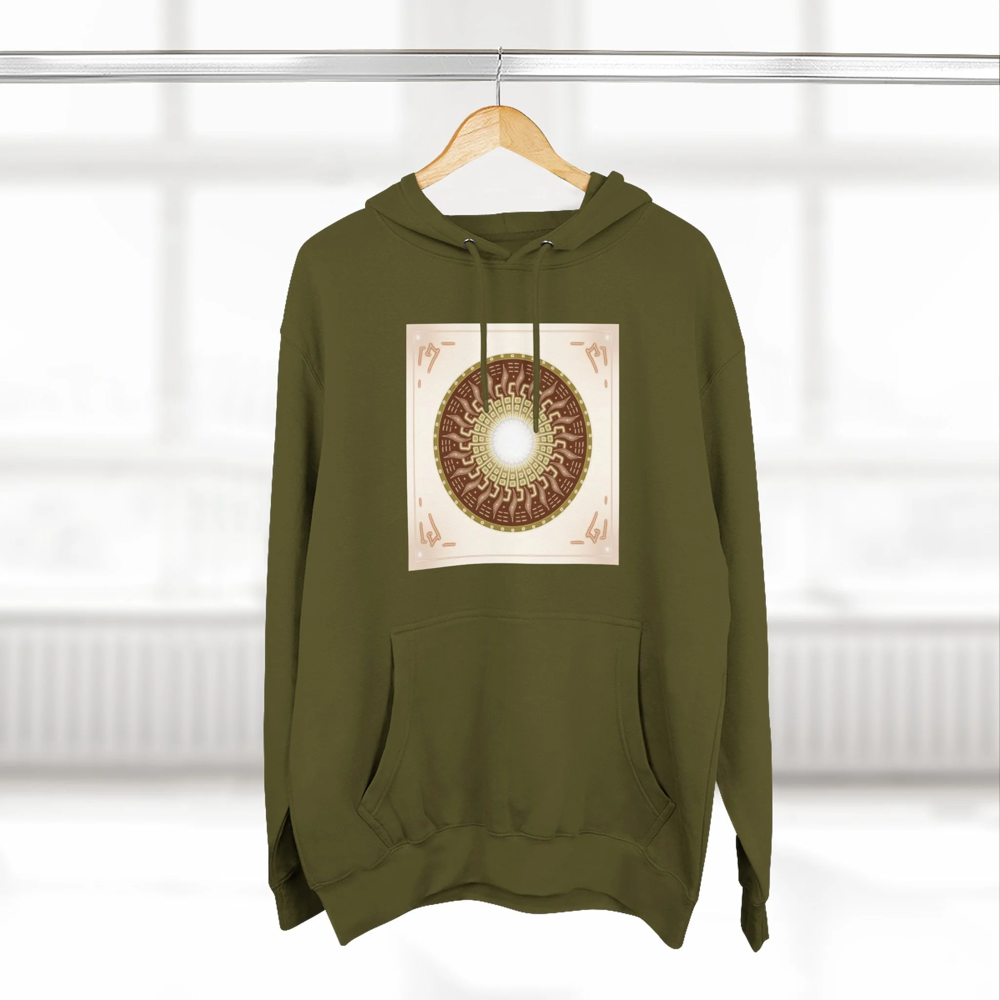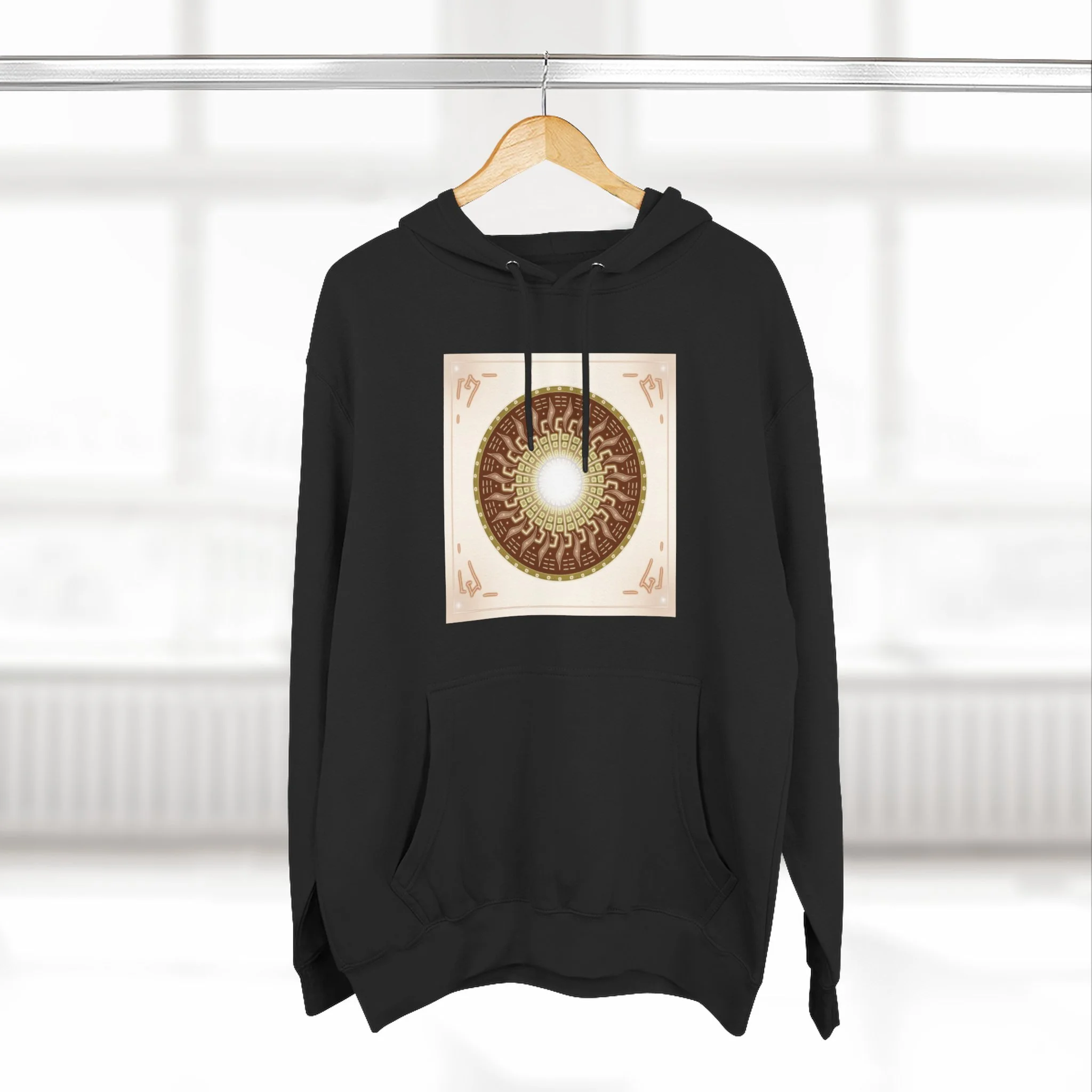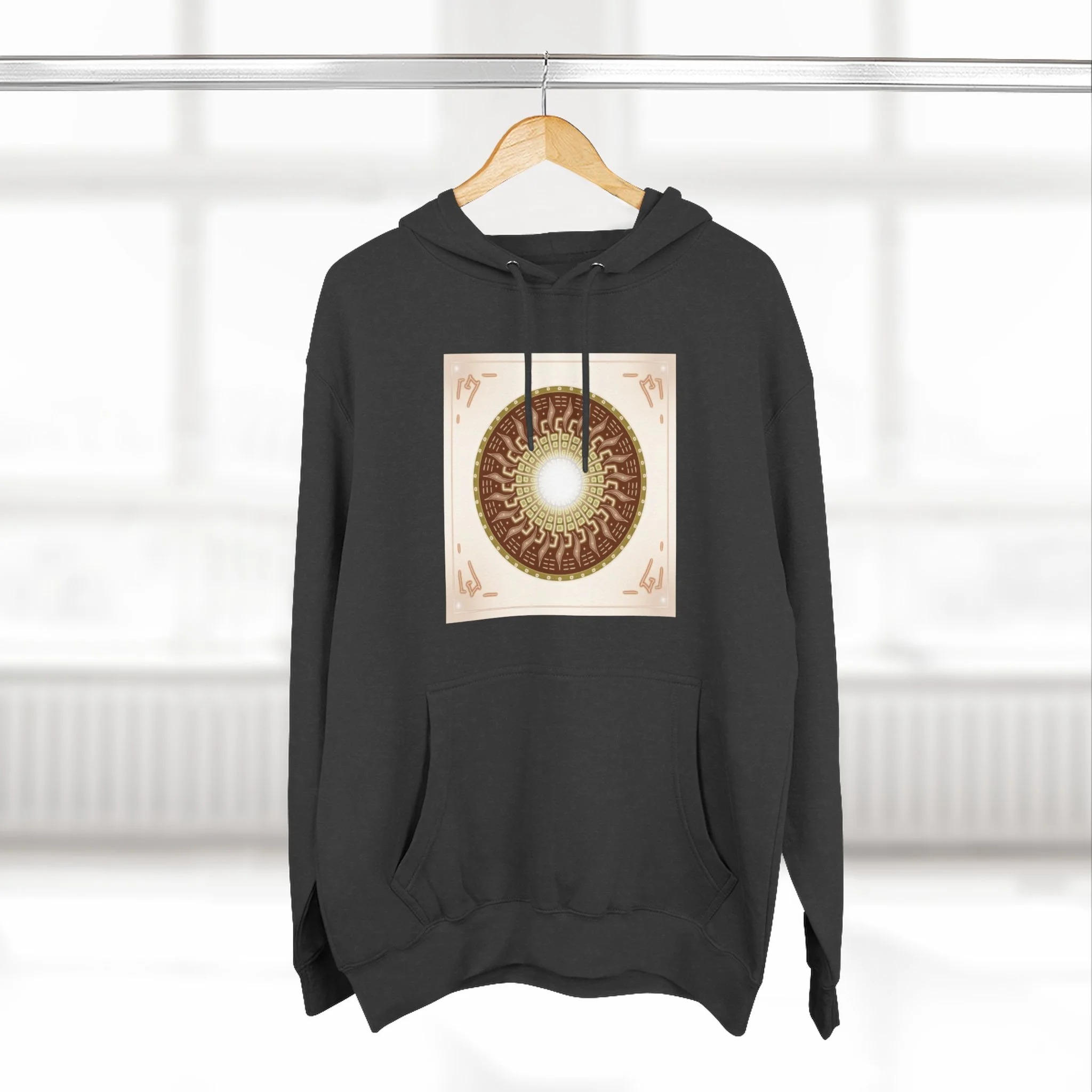 Sun Mandala Hoodie — Radiant Sacred Geometry Fleece Pullover