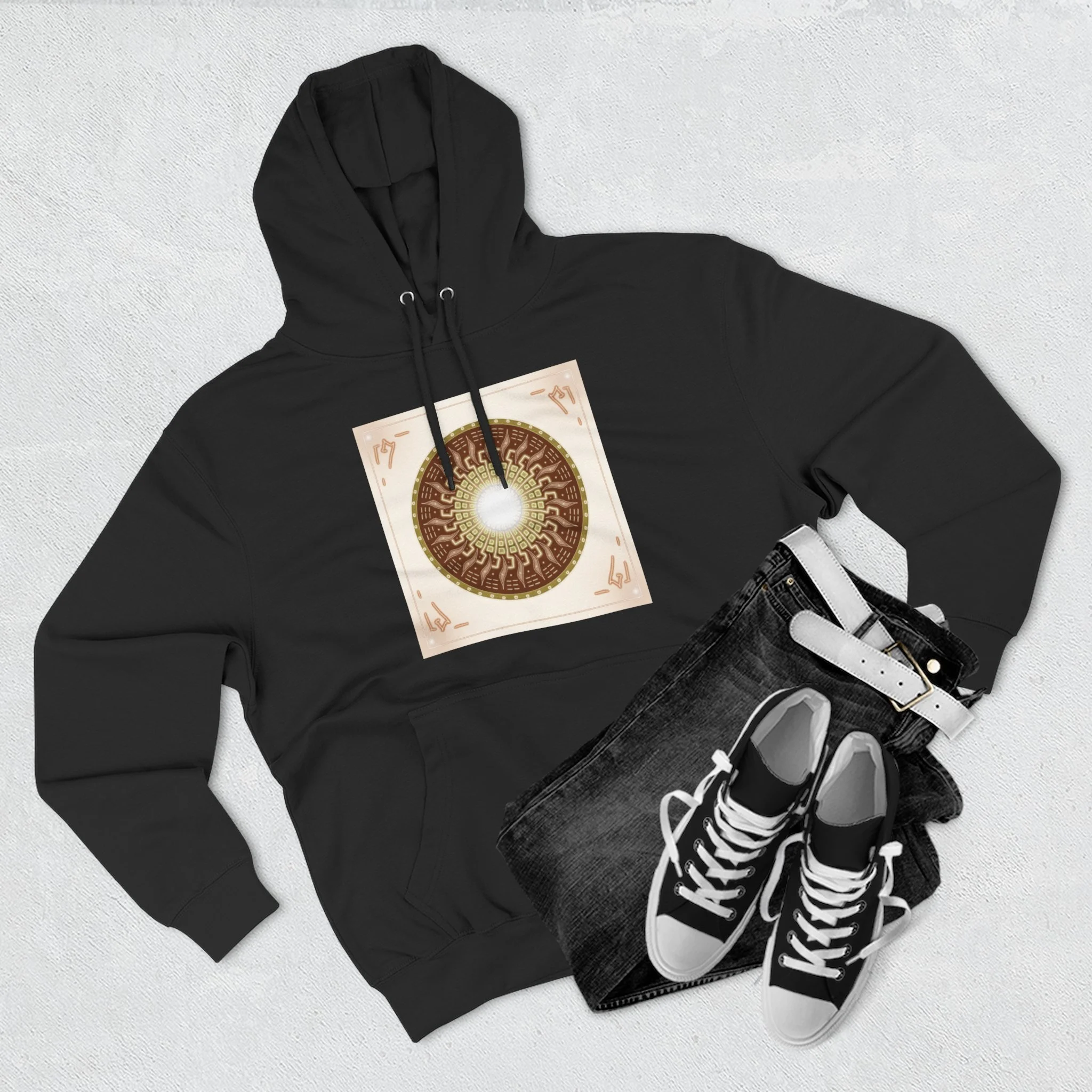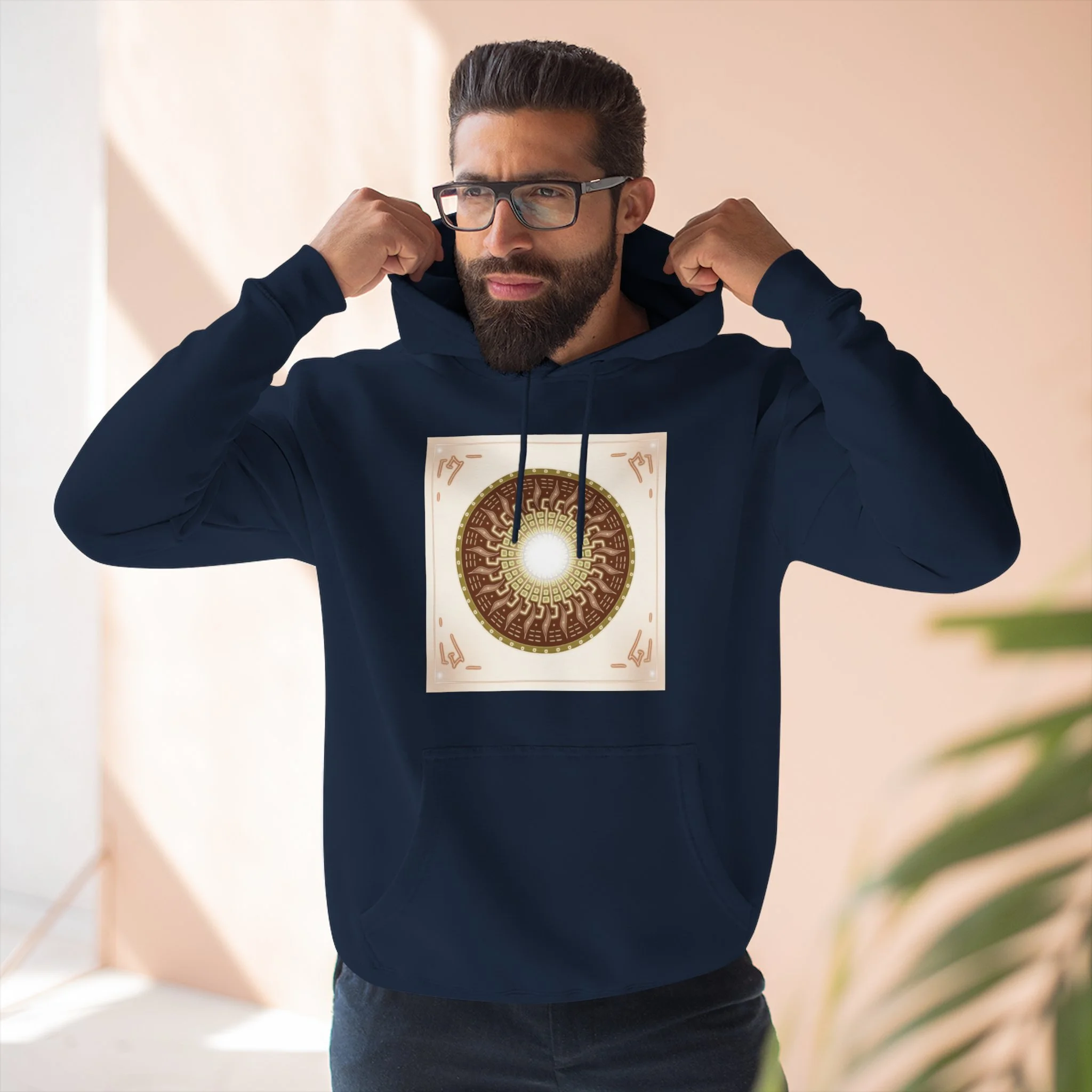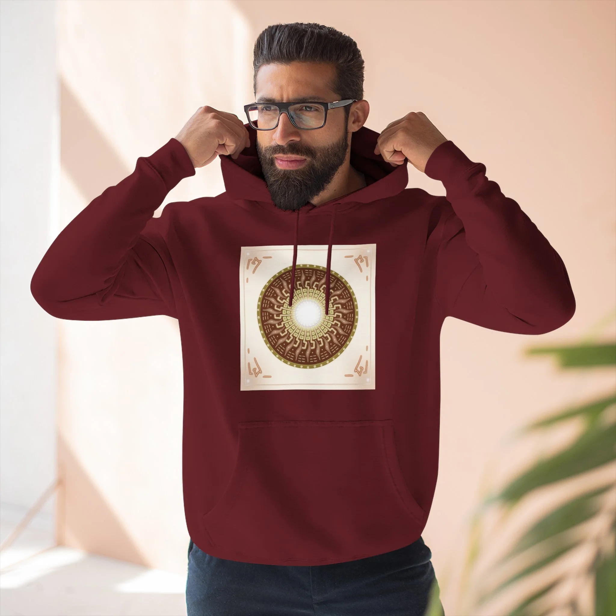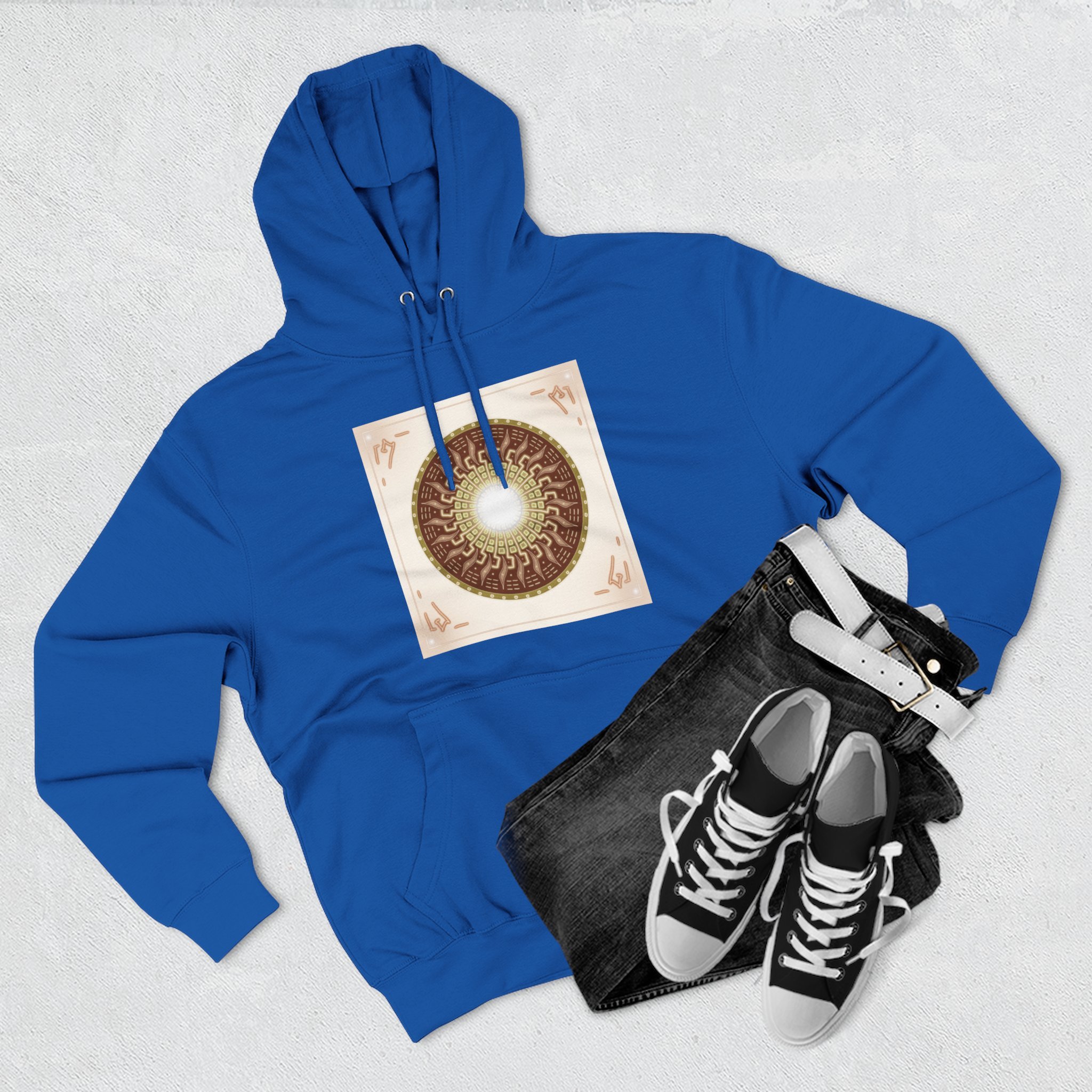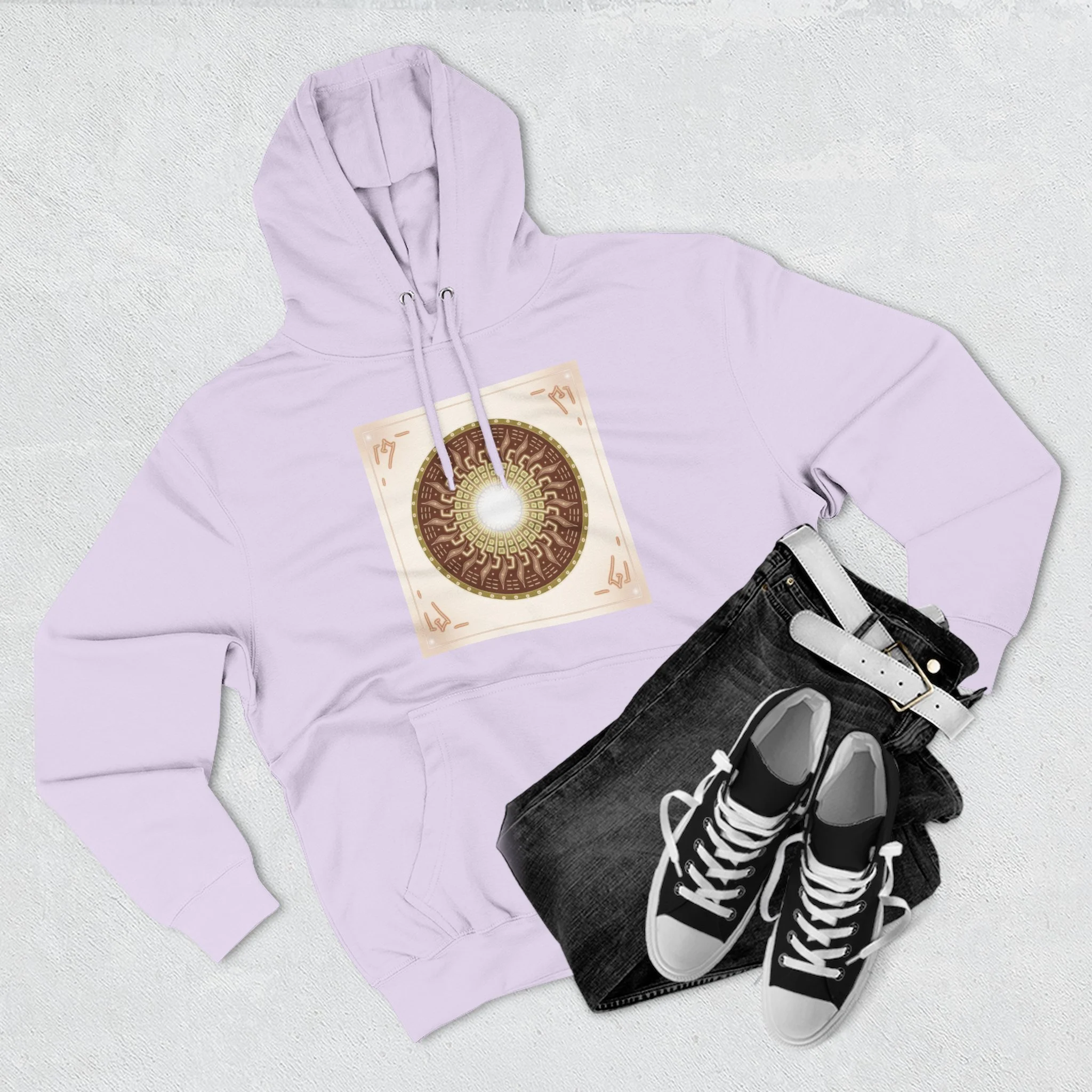 Sun Mandala Hoodie — Radiant Sacred Geometry Fleece Pullover