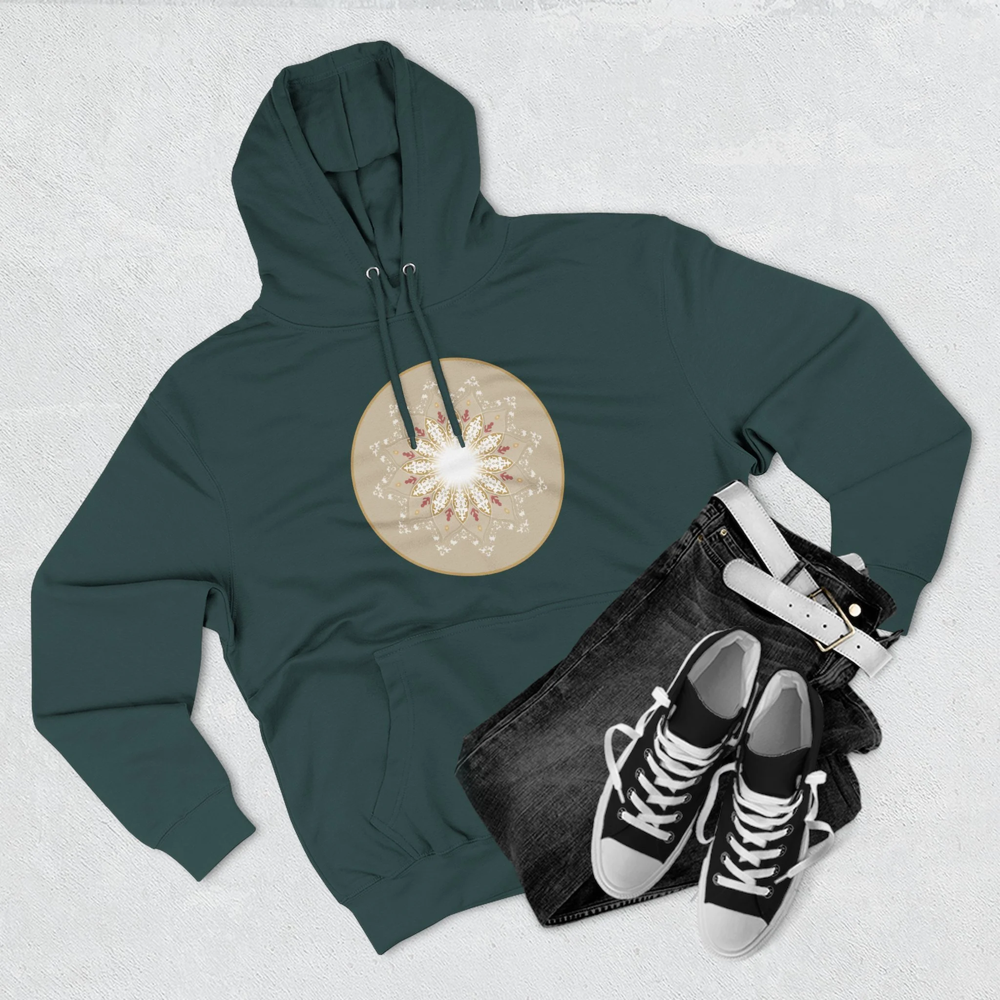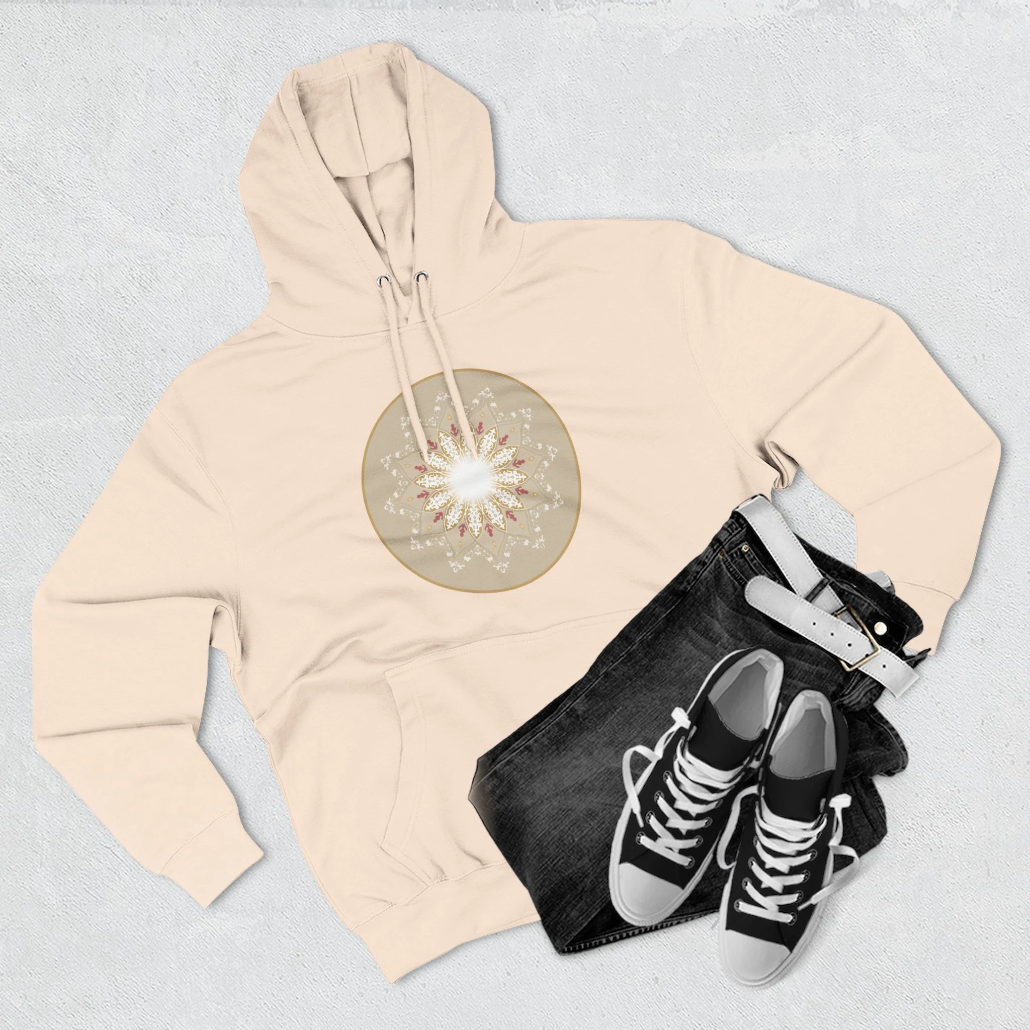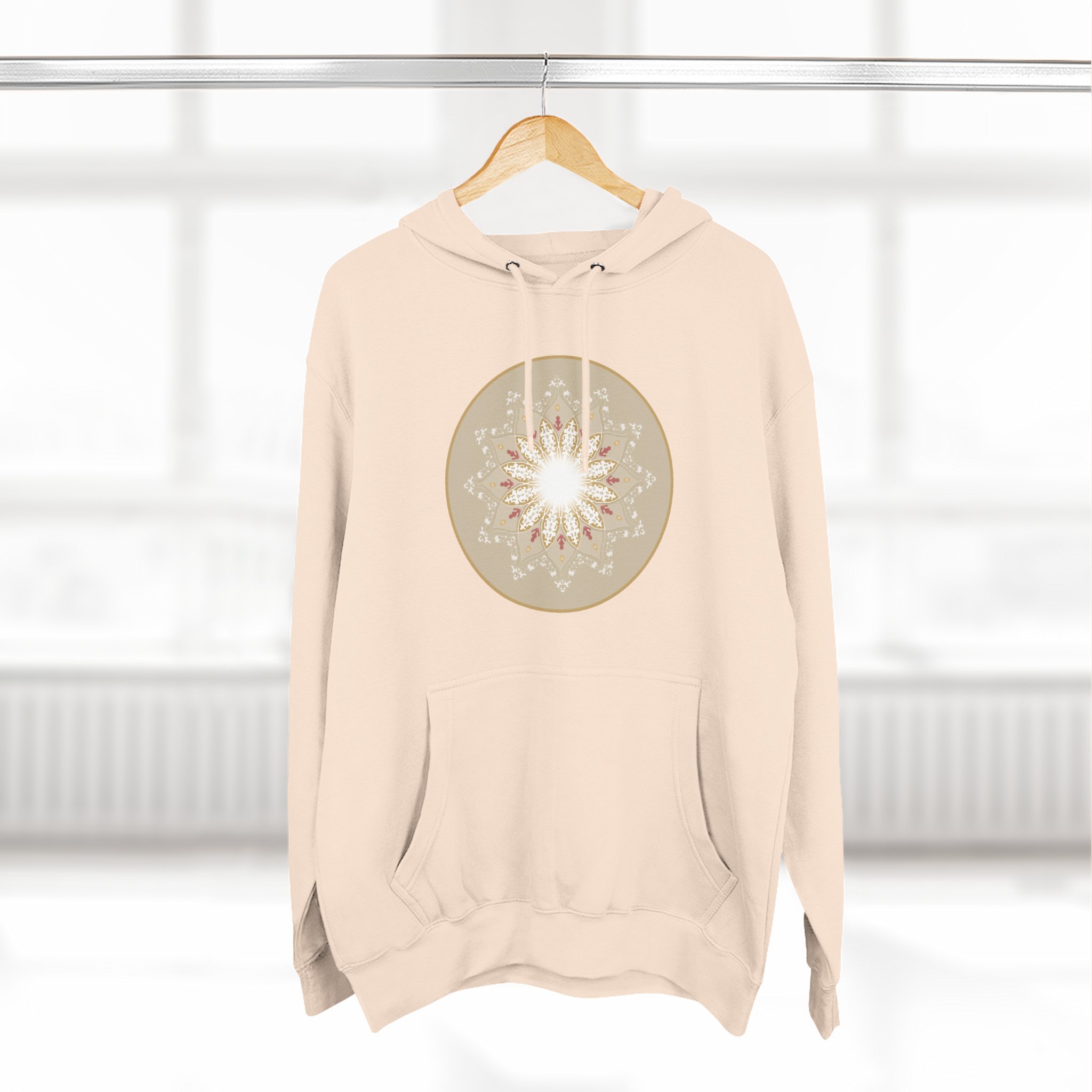 Sunburst Mandala Hoodie — Neutral Boho Fleece Pullover