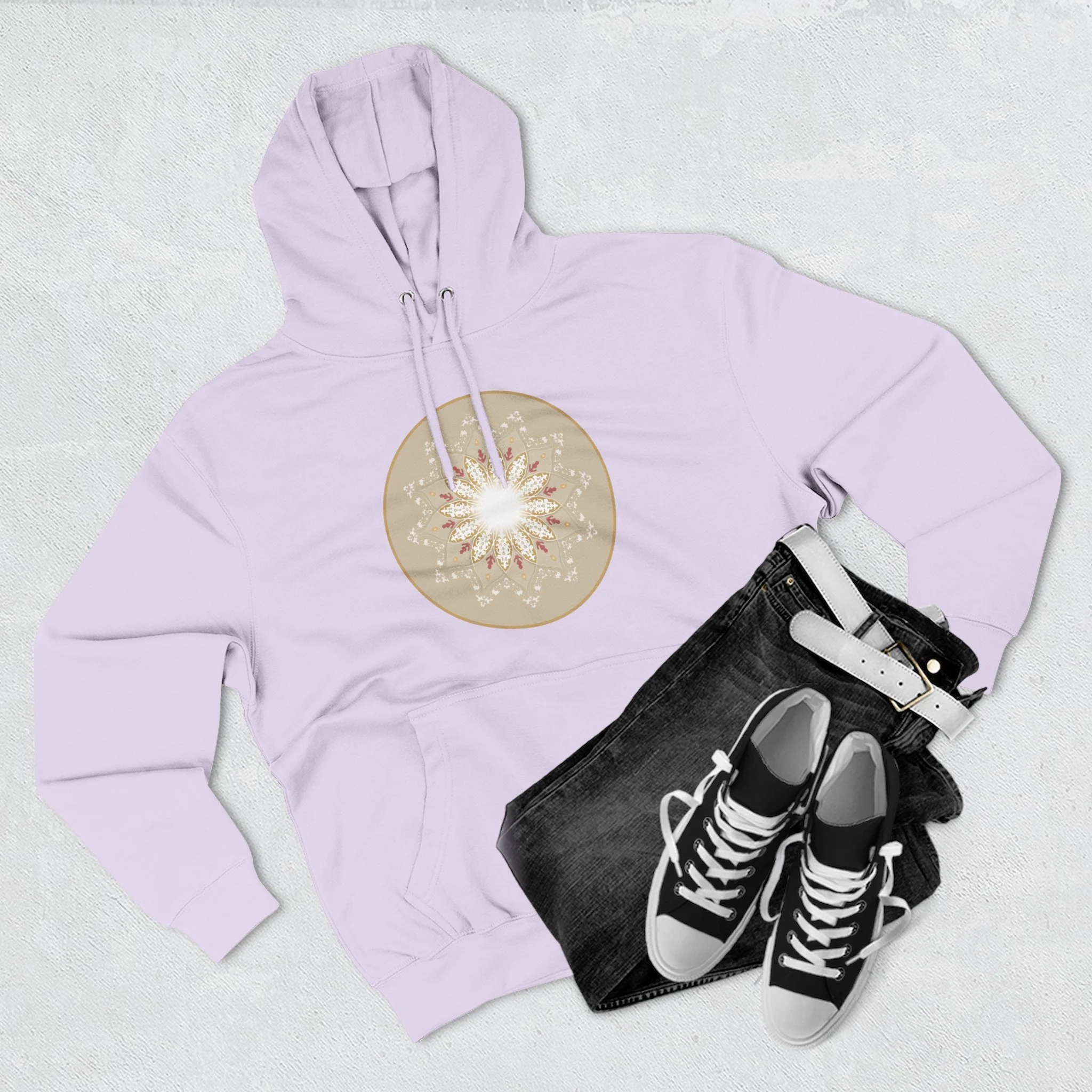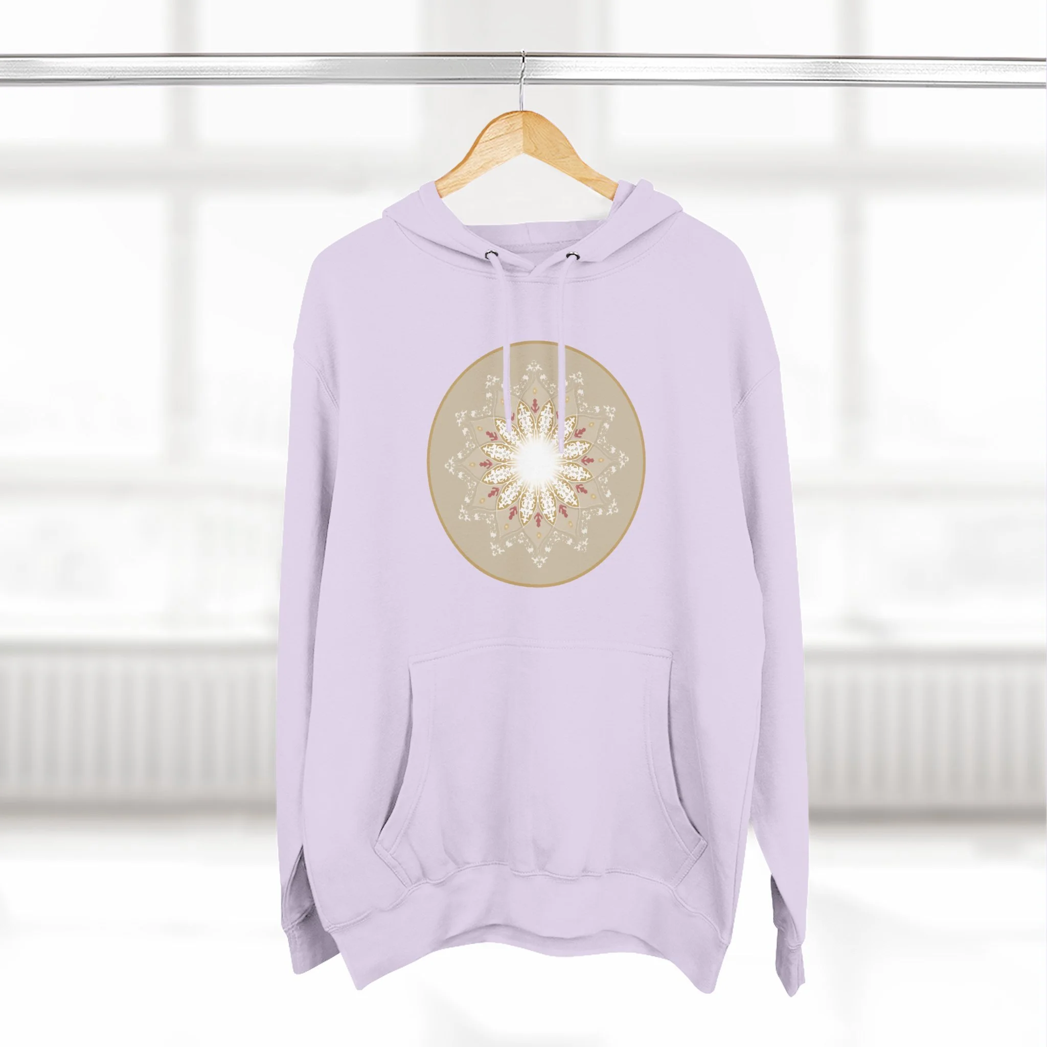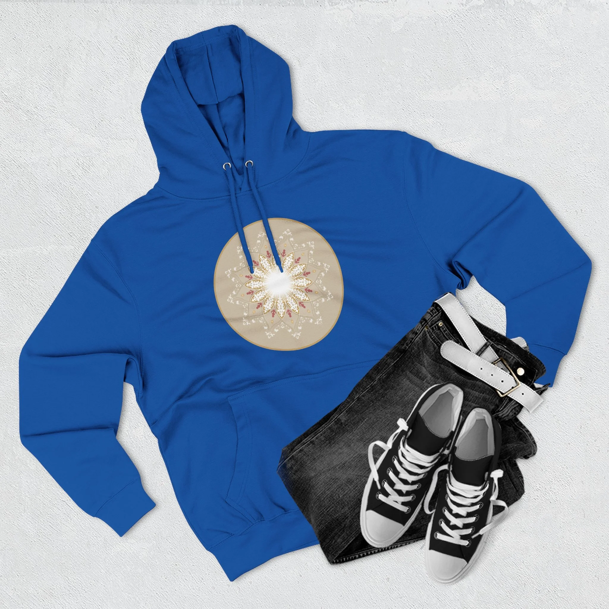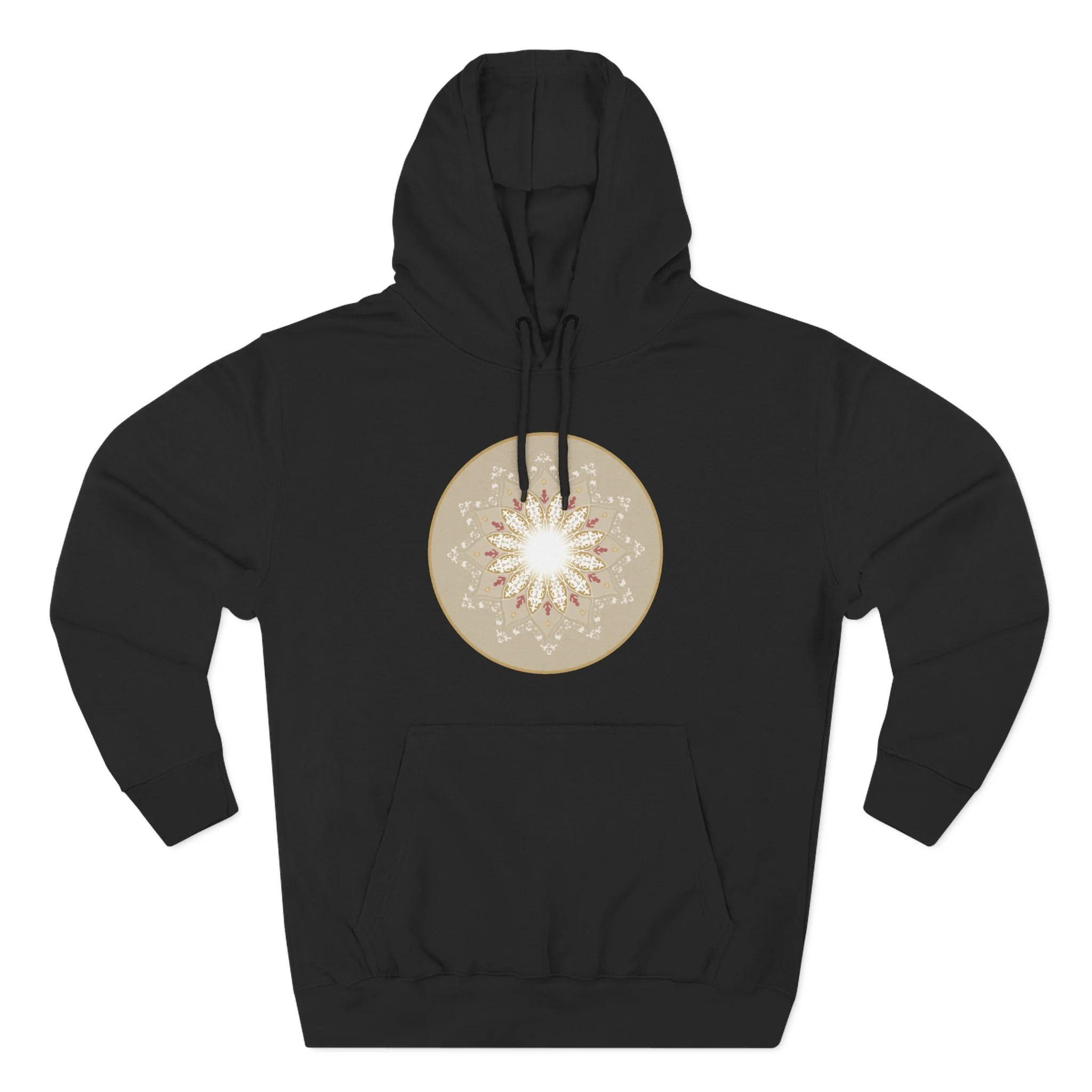 Sunburst Mandala Hoodie — Neutral Boho Fleece Pullover